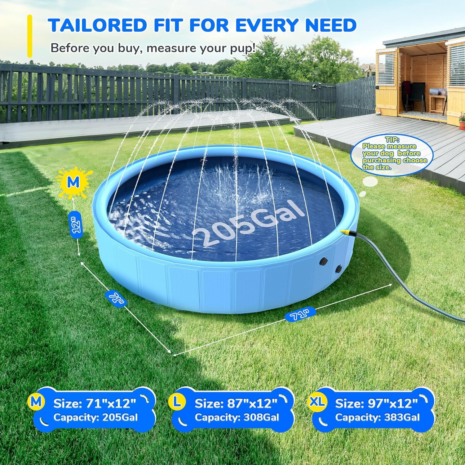 Multiple Sizes: Our 71” foldable dog pools for large dogs. Easy to install and store, perfect for backyard use, patios, or beach trips. Let pets and children splash, play, and create lasting memories together