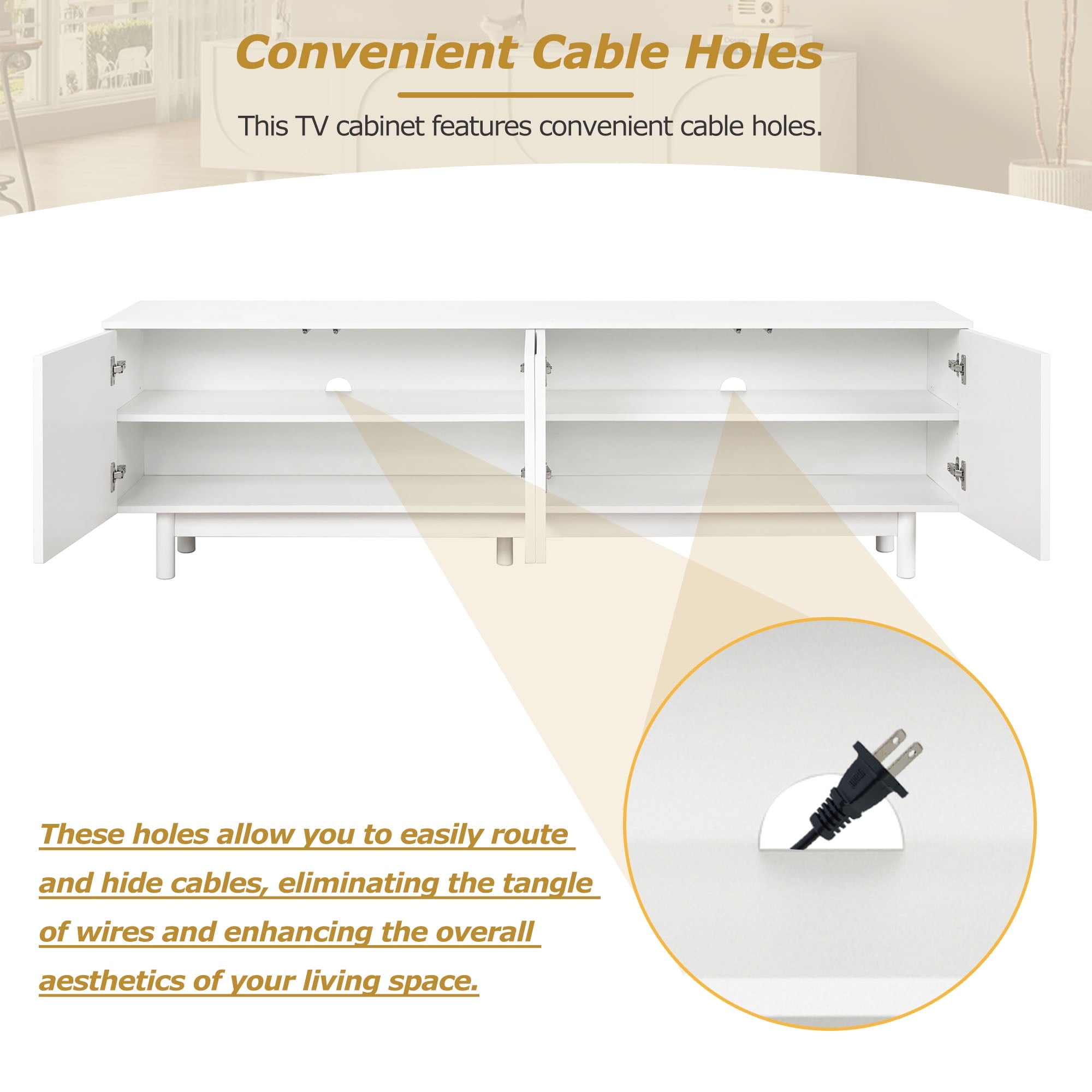 ✅ Clutter-Free – Hide media gear behind arched doors