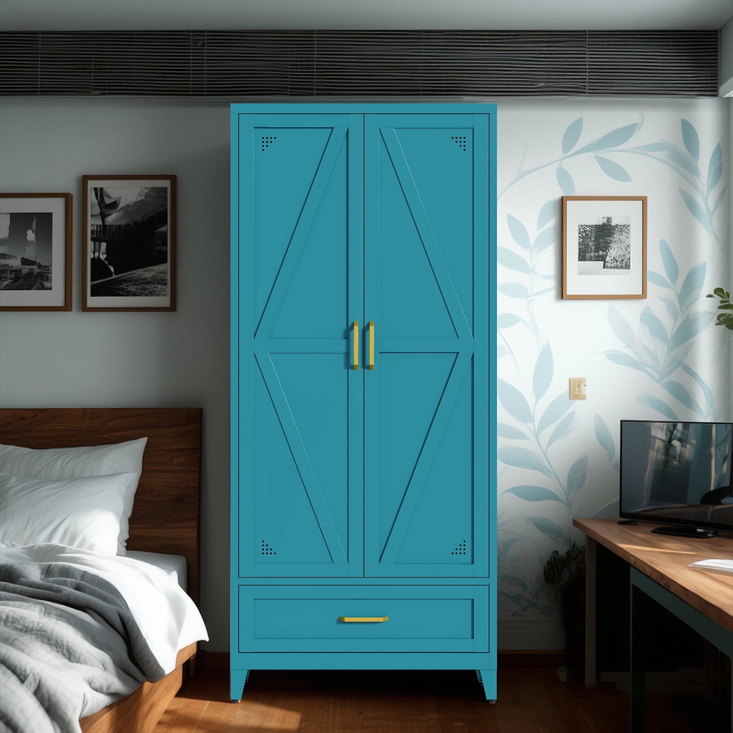 This Blue wardrobe is suitable for various storage scenarios. It is commonly used as an ideal choice for bedrooms, living rooms, changing rooms, laundry rooms, offices, etc. Drawers increase the versatility of storage and can help you organize your items neatly