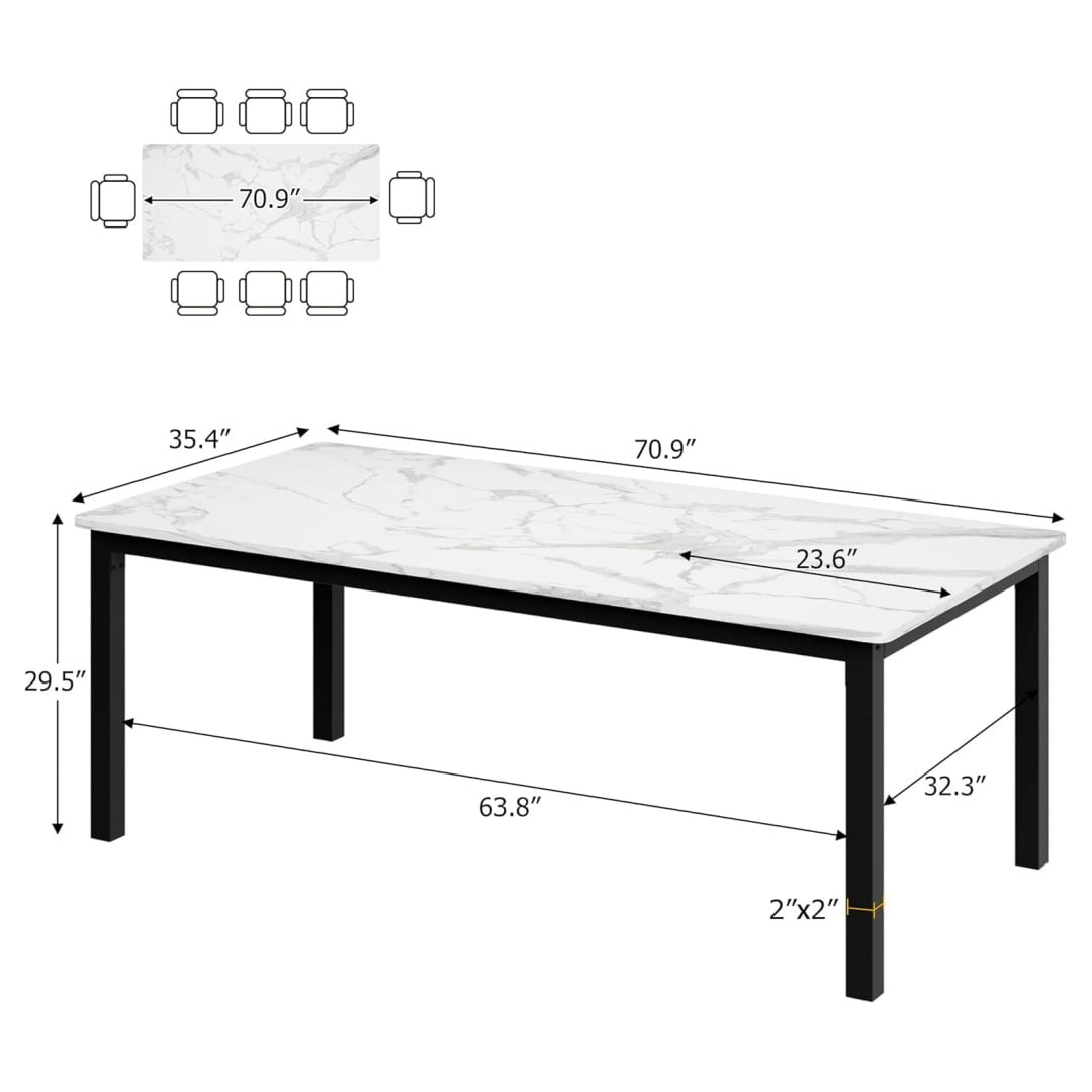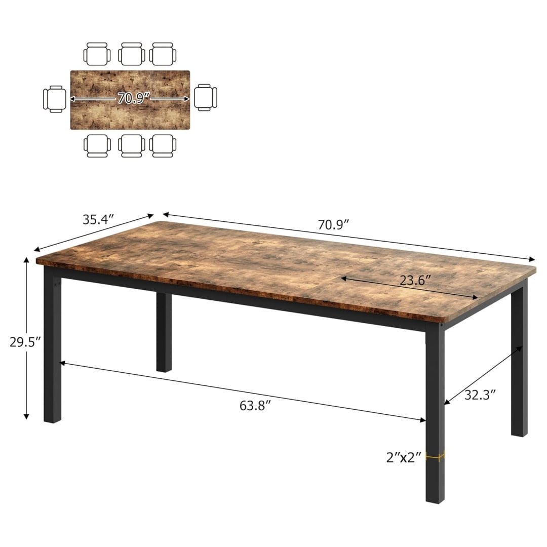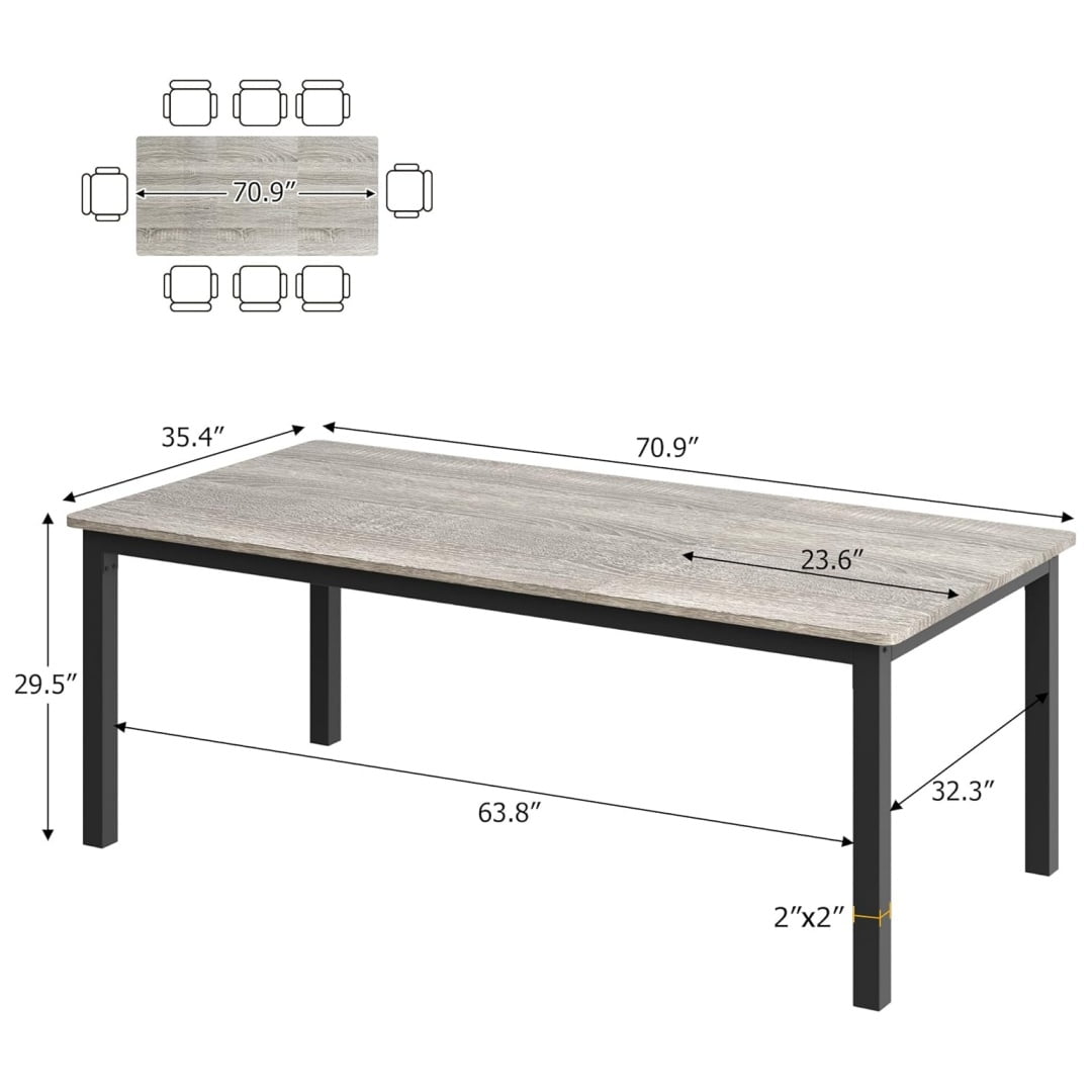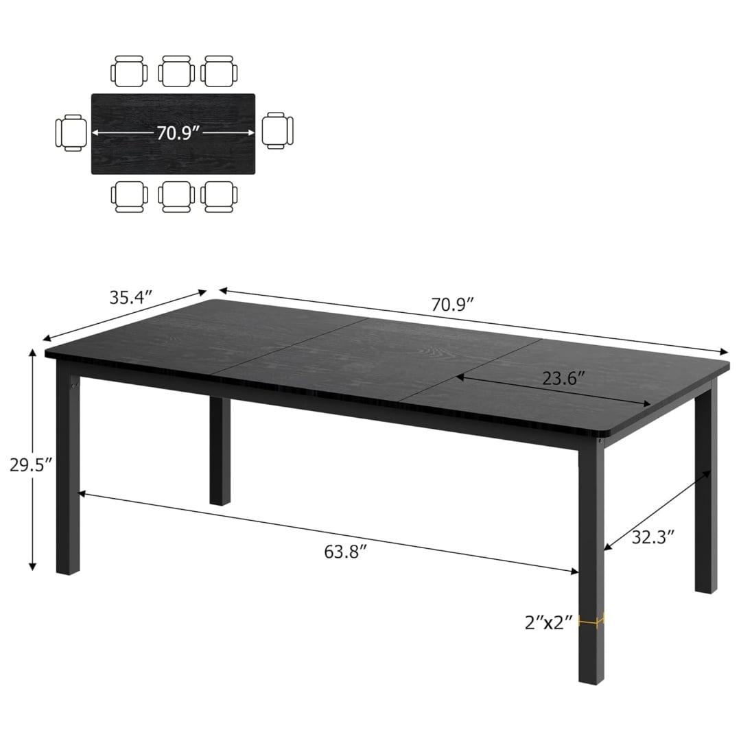 - –Spacious for Gatherings: The rectangular dining table comfortably seats six to eight people, making it perfect for family dinners or gatherings with friends. Measuring 70.9”x35.4”x29.5”, it offers ample space for food, drinks, and conversation