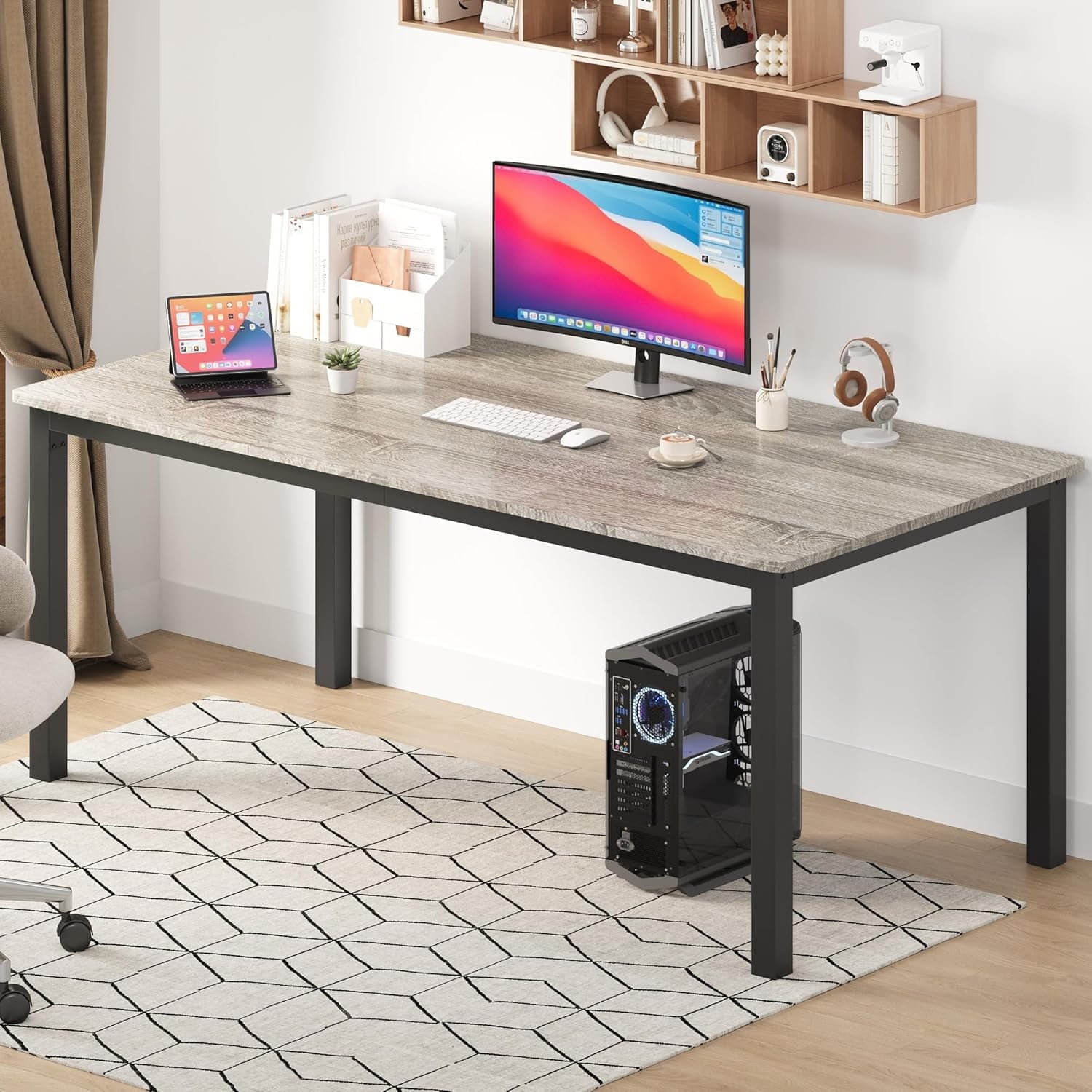 - –Versatile Multi-Functionality: This large wooden table serves not only for dining but also as a computer or writing desk. Its sleek design makes it an ideal workstation for home offices, study areas, or conference rooms, meeting a variety of needs