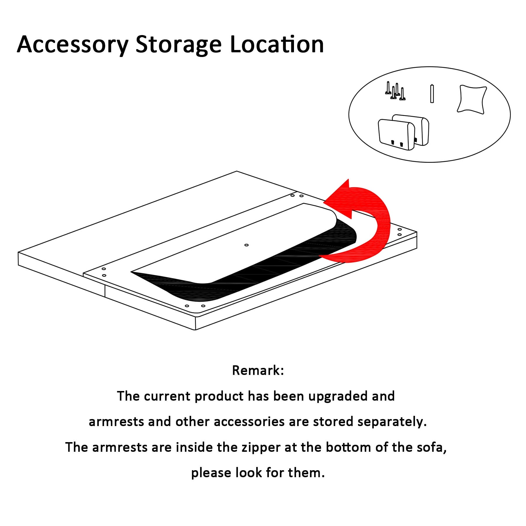 Those legs & hardware all put inside the sofa bottom,please unzip the zipper on the sofa bottom and take out all the parts.if you have any questions about this item please contact us,We will solve it for you as soon as possible.