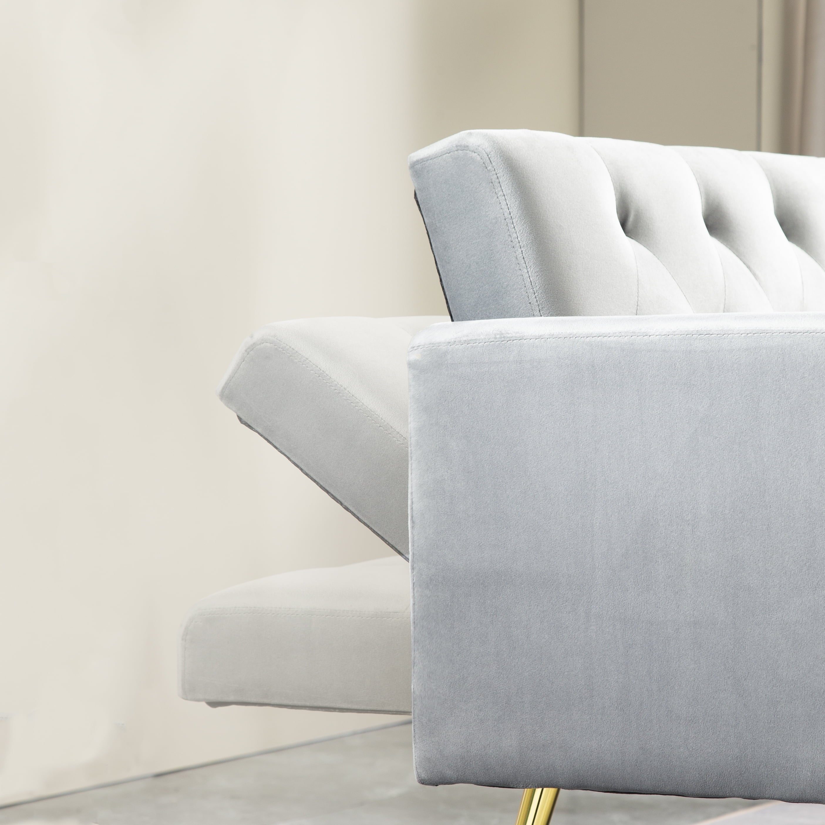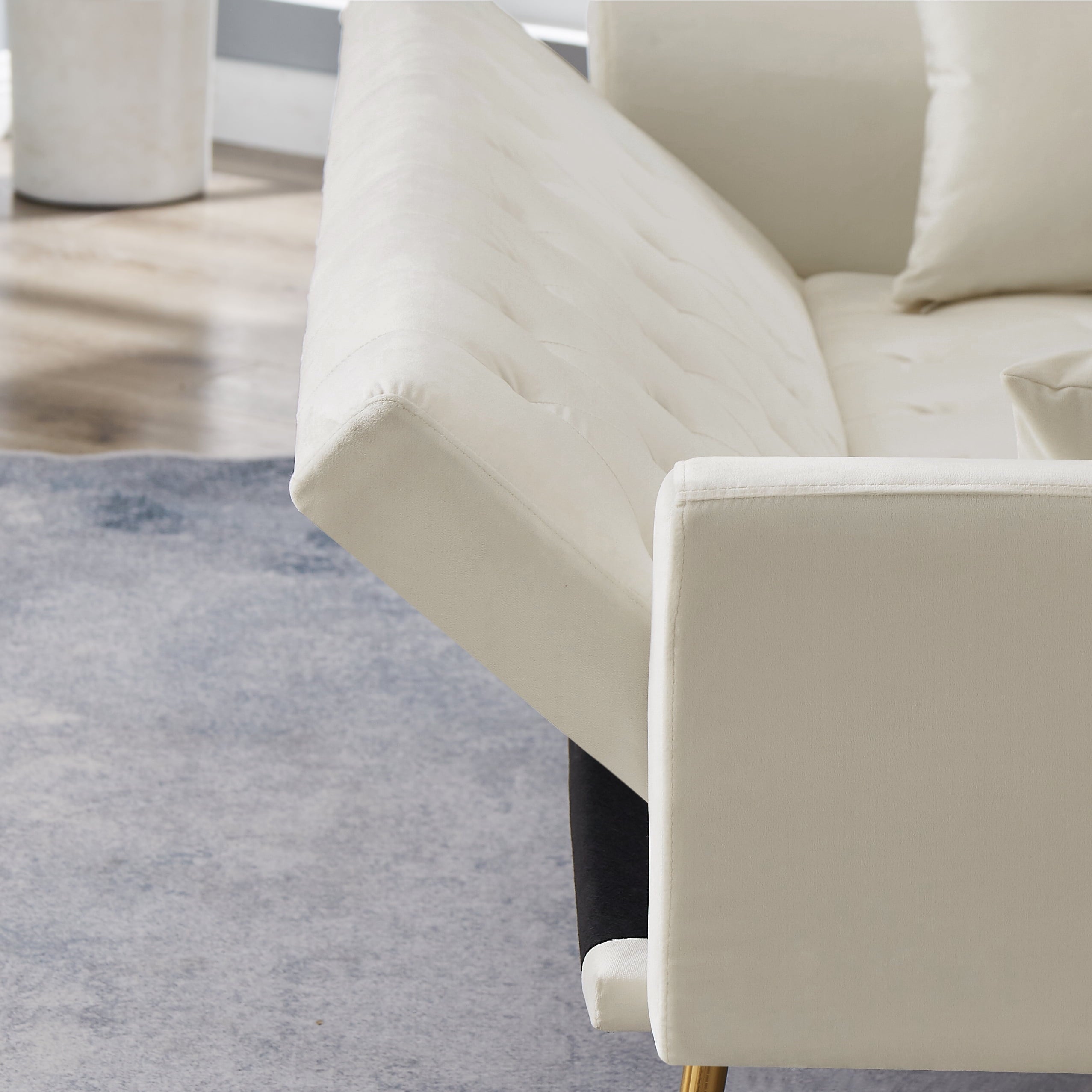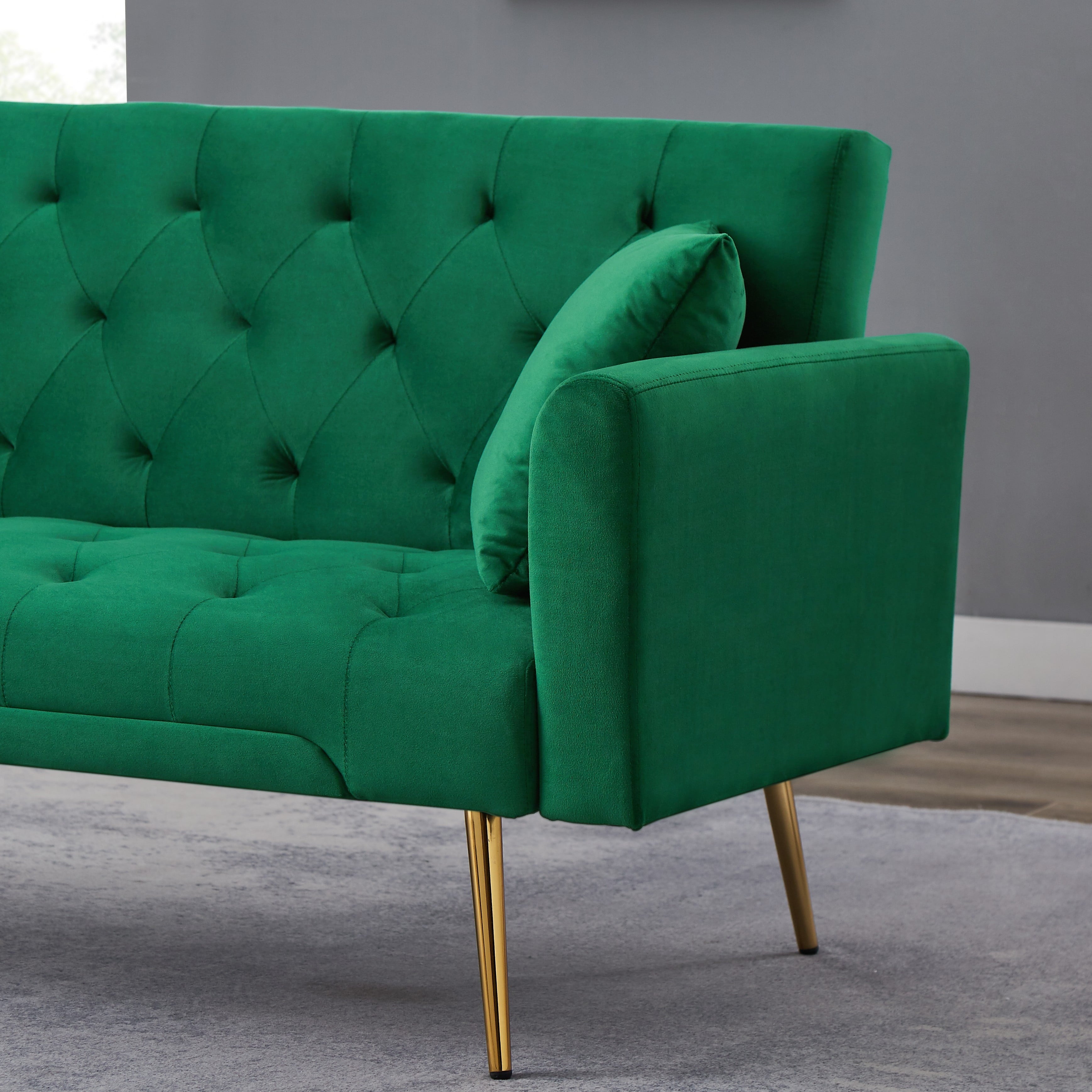 - STURDY AND DURABLE:The velvet sofa bed has 5 golden durable tapered legs,which will not crack as easily as wooden legs. It ensures that the sofa can bear heavier weight,and even if two 300-pound people sit on the sofa without deformation.