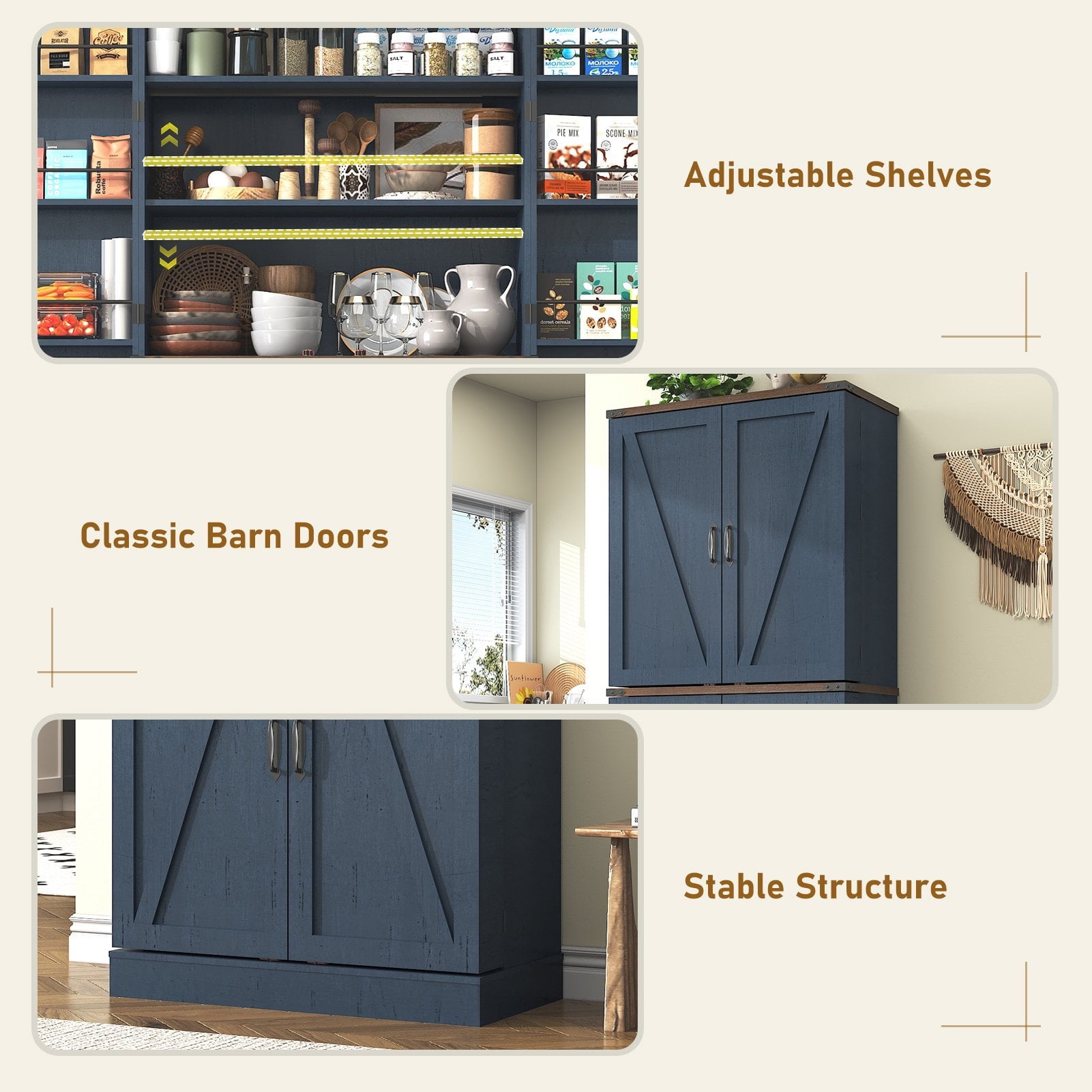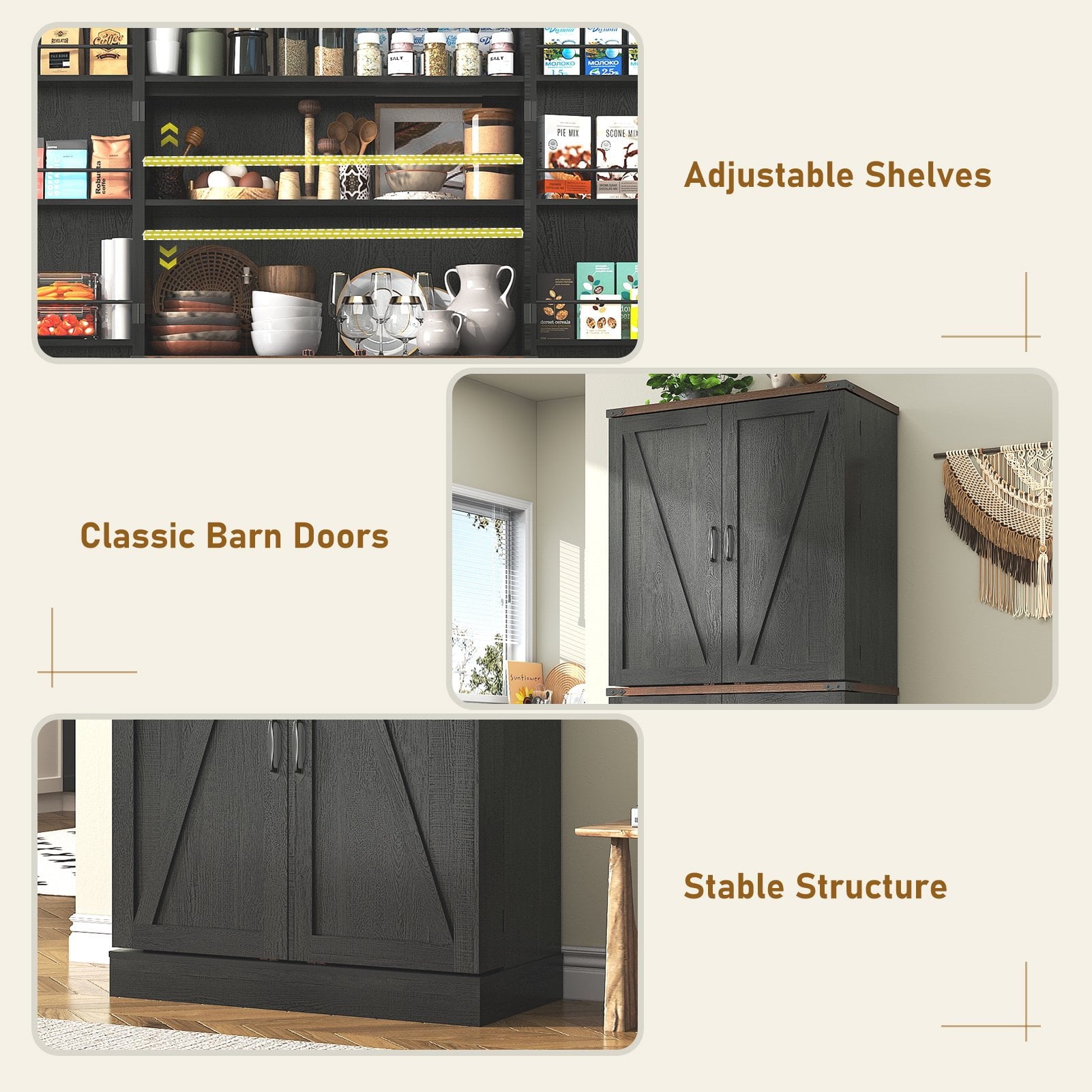 5、Stability and Security: The Farmhouse Storage Cabinet is designed for stability, ensuring that your belongings are stored securely.