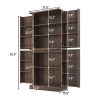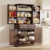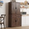 71″ Tall Farmhouse Kitchen Pantry with 12 Side Shelves & Adjustable Shelves, 5 Layers Pantry Storage Cabinet w/Load-Bearing Steel Pipe & 4 Barn Doors for Kitchen, Dining Room, Living Room, Brown
