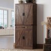 Home Pantry Cabinets 71″ Tall Farmhouse Kitchen Pantry with 12 Side Shelves & Adjustable Shelves, 5 Layers Pantry Storage Cabinet w/Load-Bearing Steel Pipe & 4 Barn Doors for Kitchen, Dining Room, Living Room, Brown