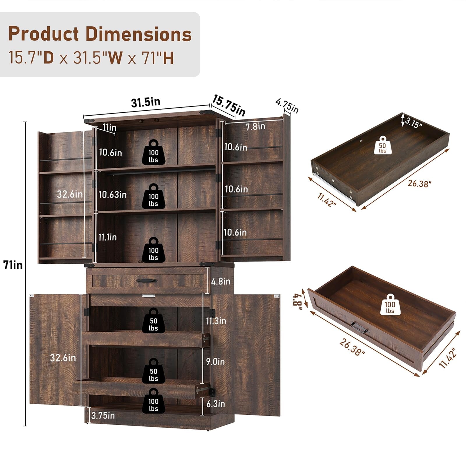 Product Dimensions :15.7″D x 31.4″W x 71″H