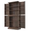 71" Tall Farmhouse Kitchen Pantry with 12 Side Shelves & Adjustable Shelves, 5 Layers Pantry Storage Cabinet w/Load-Bearing Steel Pipe & 4 Barn Doors for Kitchen, Dining Room, Living Room, Brown