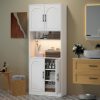 - The Purpose Is Up To You: It’s time to get your house in order. Kitchen pantry storage cabinet with doors and shelves can hold beverages various canned foods, and dishes. Used as a bathroom storage cabinet can hold cleaning supplies and towels. Of course, it is also suitable to be used as a coffee bar cabinet or bookshelf.