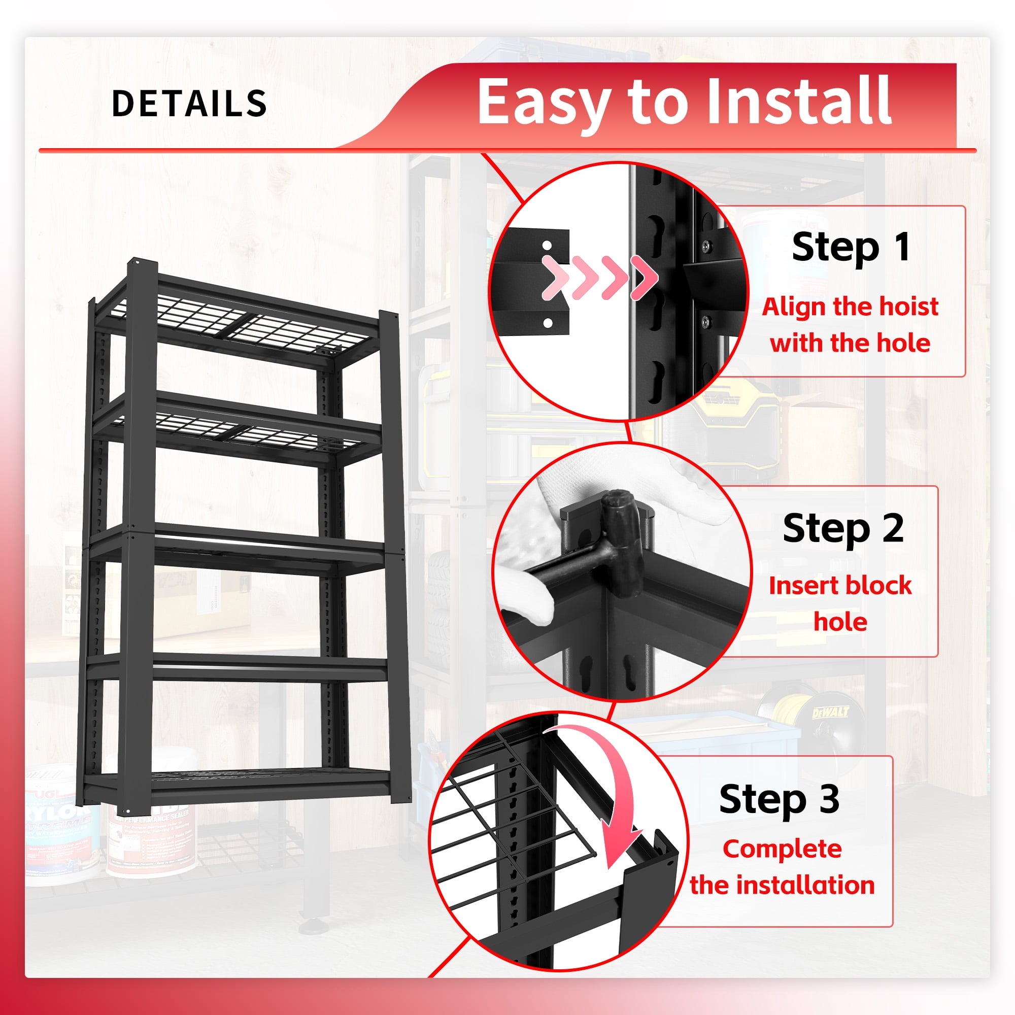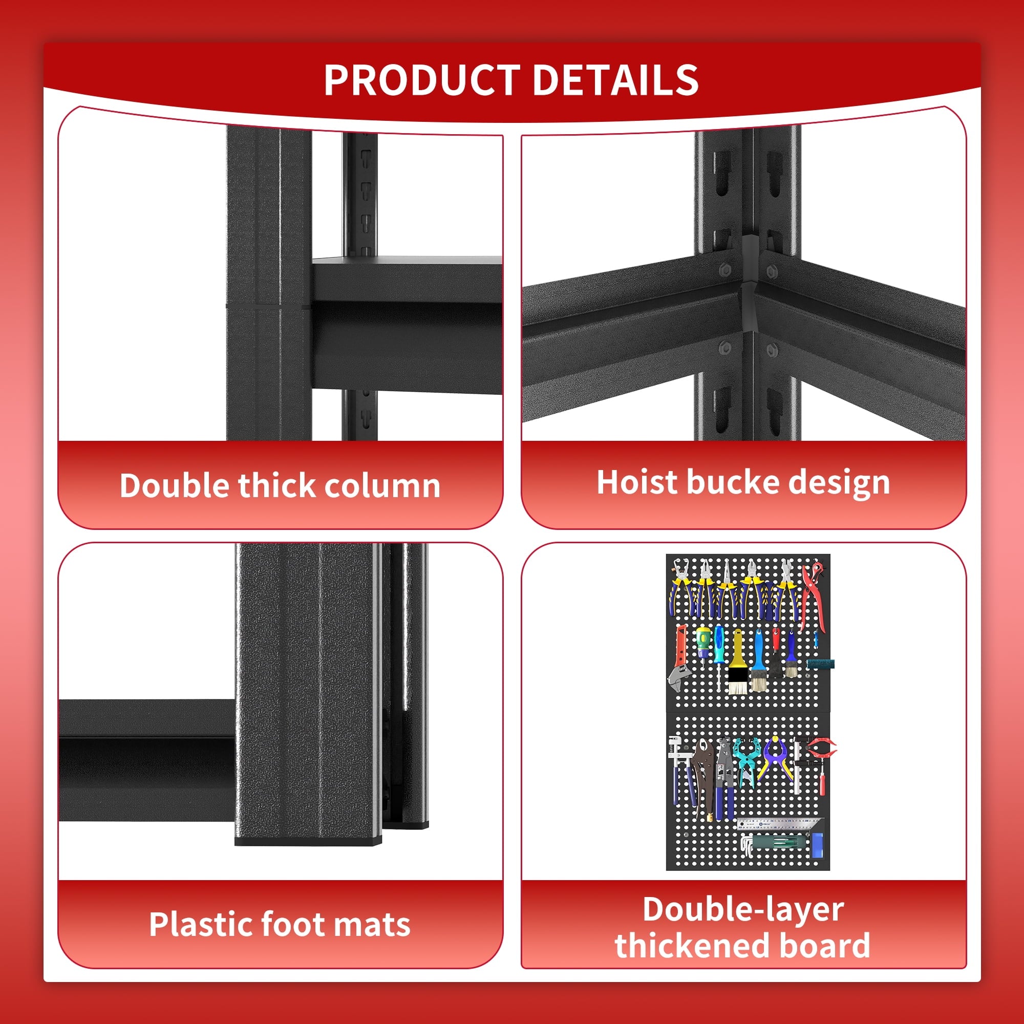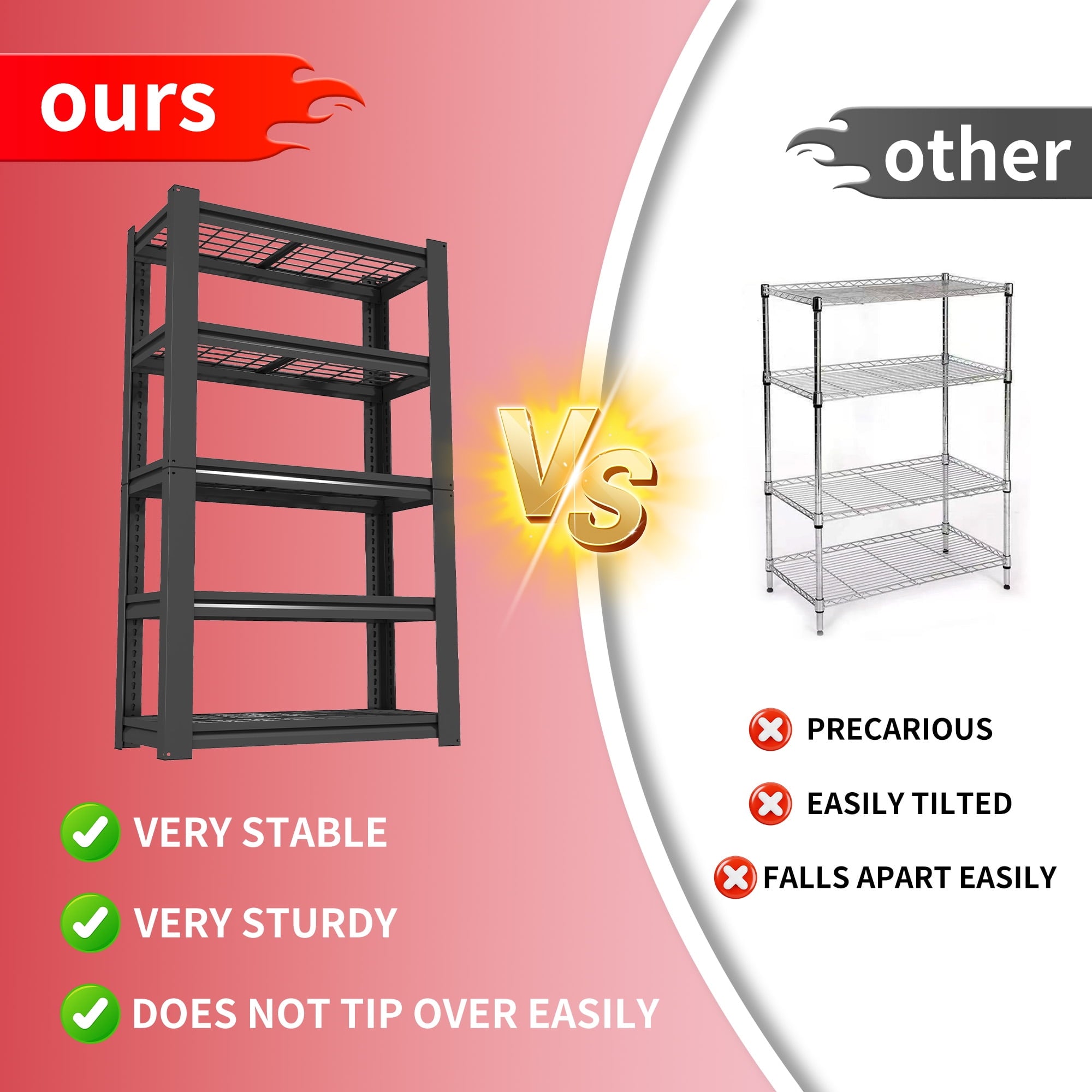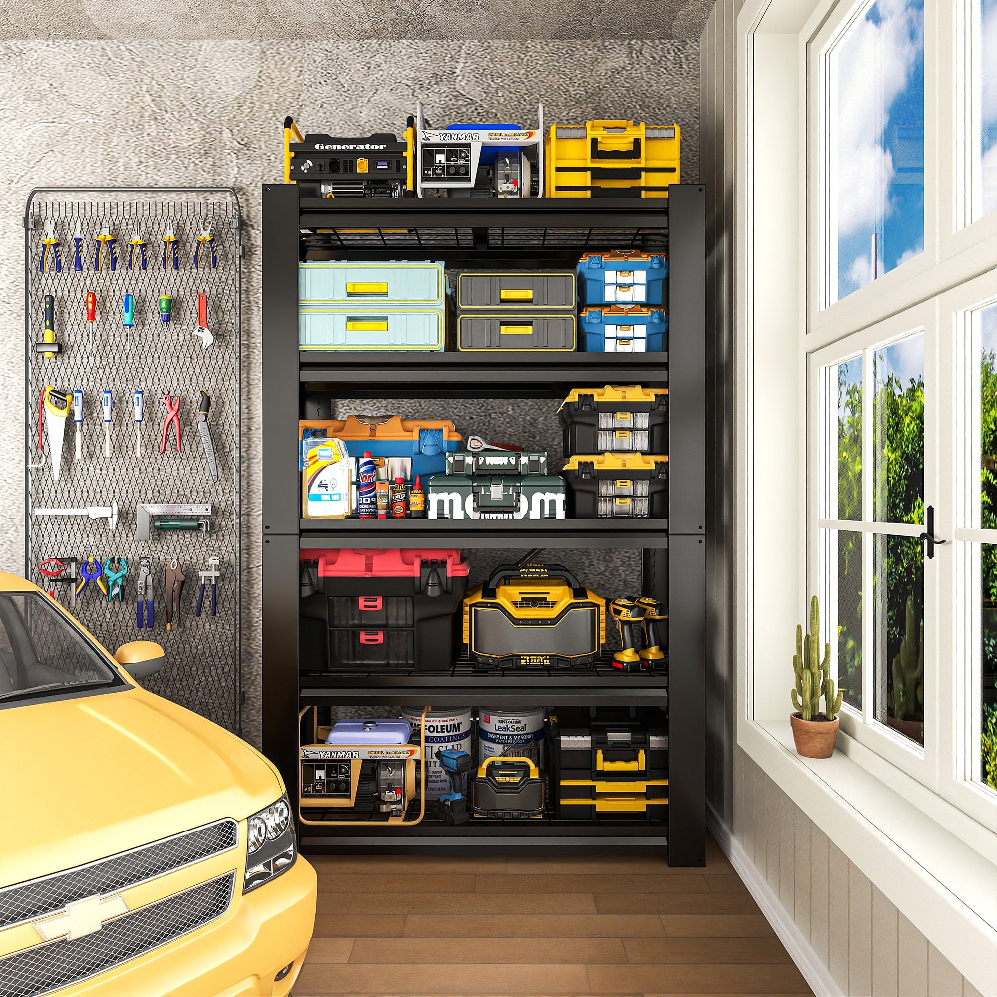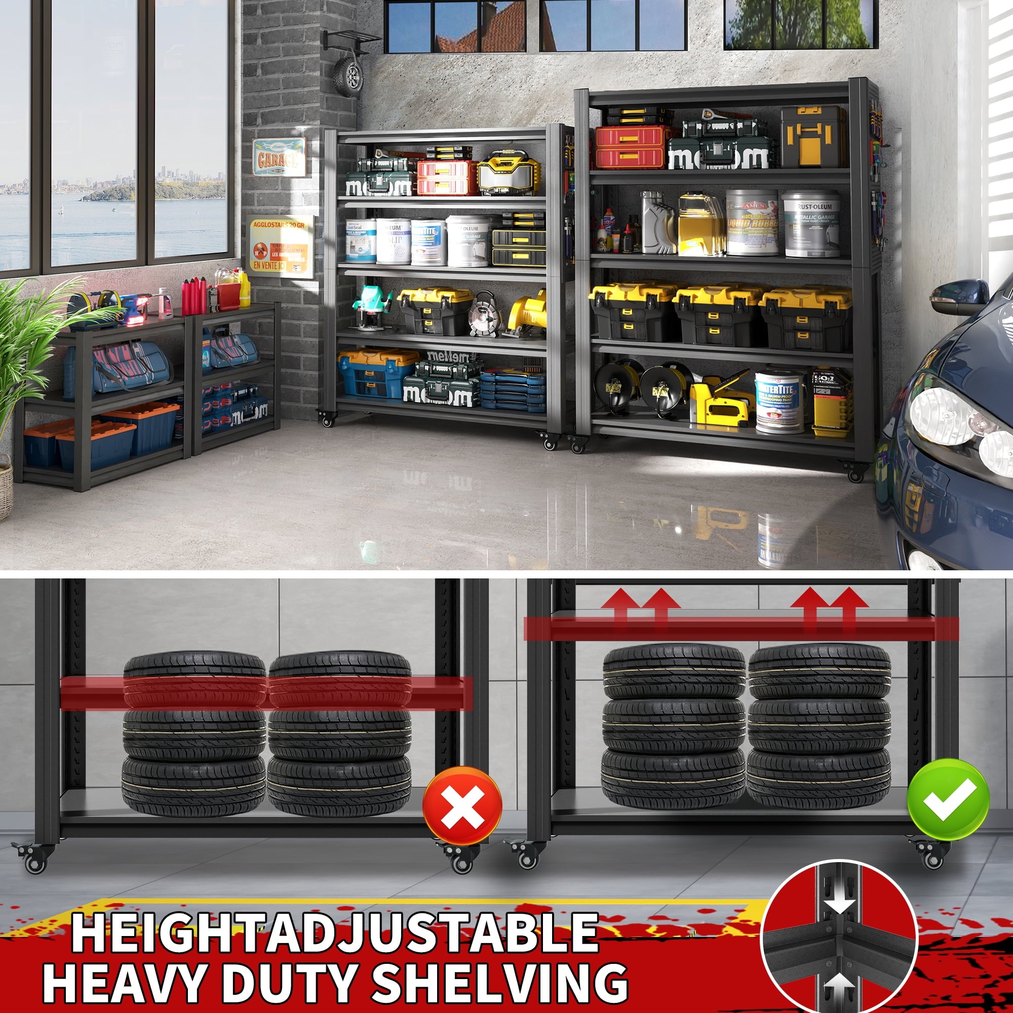 - ✅【5 Adjustable Shelves to Meet Any Storage Needs】The unique design allows for adjustable heights on each shelf, enabling both large and small items to find their perfect spots, thereby significantly enhancing storage efficiency and keeping your garage tidy and organized
