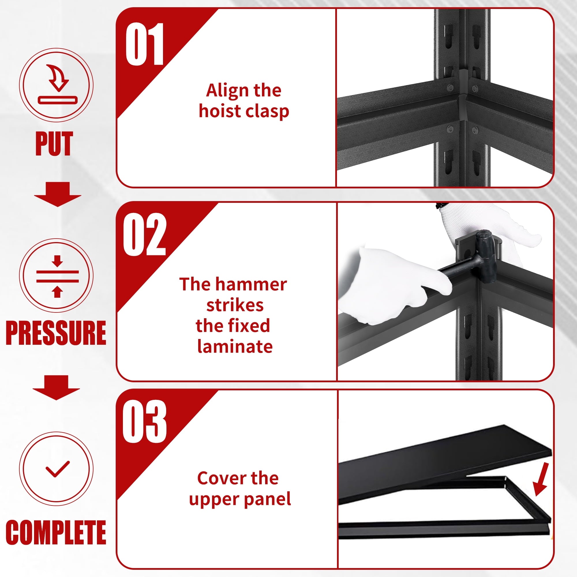 - ✅【Rapid Installation】The unique interlocking design of the garage shelving, coupled with detailed instructions, makes the assembly process as simple as building with blocks. It can be installed in just 10 minutes, saving time and effort while providing a hassle-free assembly experience