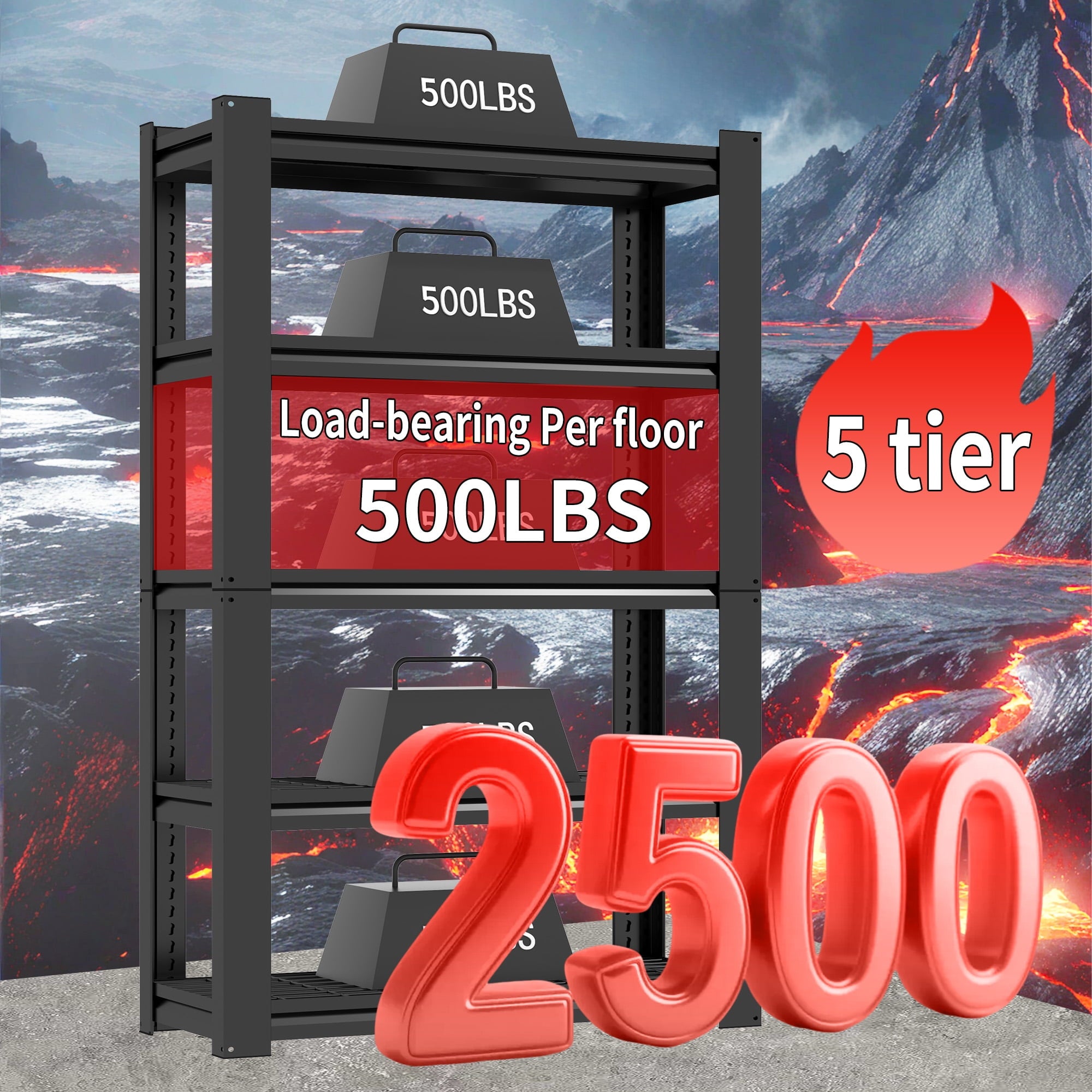 - ✅【Heavy-Duty Storage Shelves】This shelf possesses excellent load-bearing capacity, with a total weight capacity of up to 2500 pounds. Its construction is entirely made of steel, demonstrating unparalleled strength and durability compared to common wooden, plastic, or wire shelving. If you are searching for a long-lasting storage solution, then this shelf is undoubtedly your ideal choice