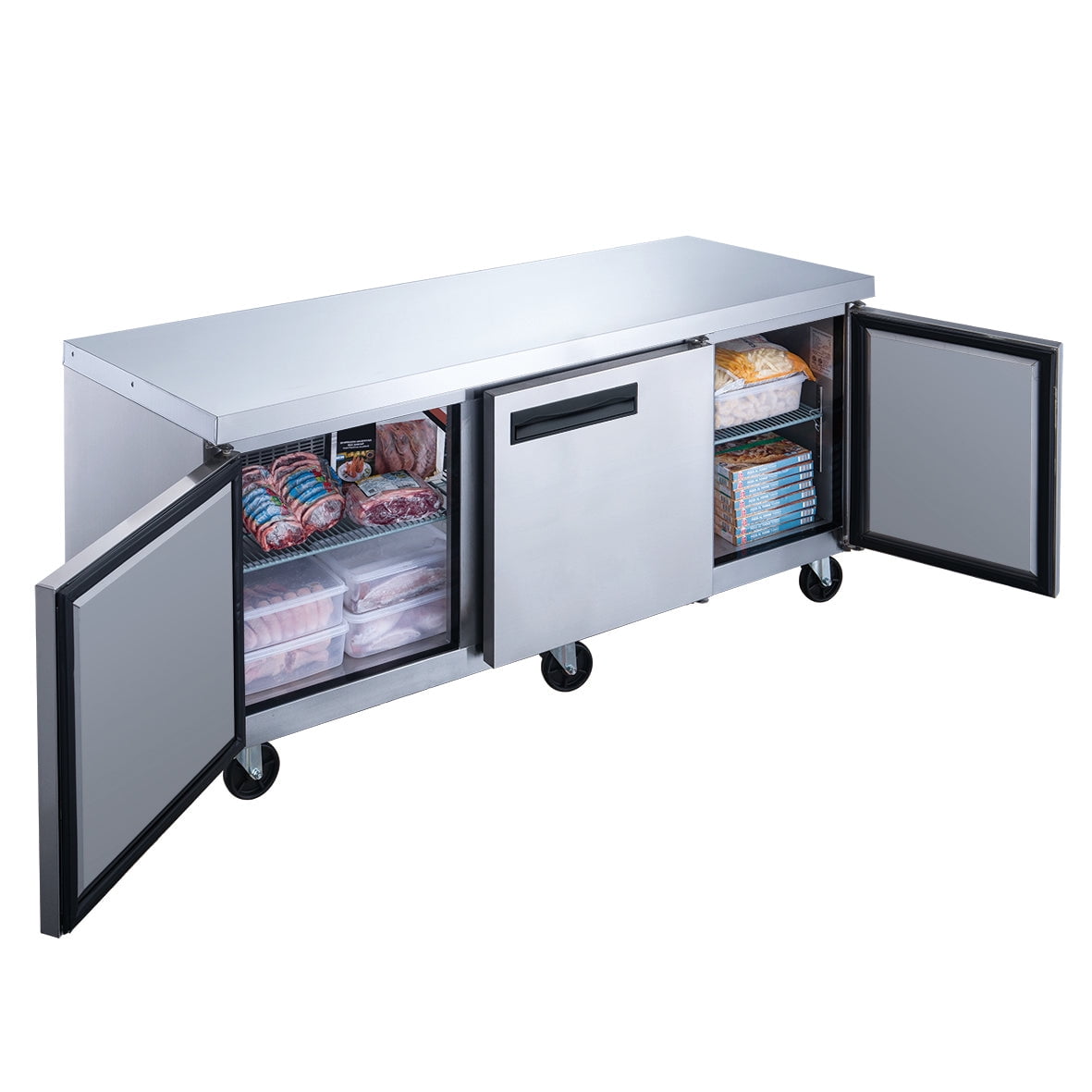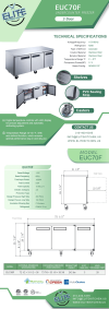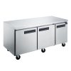 Safely store and freeze all types of food with the Elite Kitchen Supply EUC70F commercial undercounter freezer. This 3-door reach-in undercounter freezer has ample space for all your needs. Wire shelves keep food organized and are easily removable. The fully insulated interior and door means temperatures remain constant all day. Commercial use only. 3 years ALL PARTS and 6 years COMPRESSOR WARRANTY for NSF refrigerator, freezer. Free labor warranty available for one month.