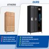 - 【Spacious Multi-Door Storage】Three large compartments (35.43″D x 15.7″W x 72″H) with 9 hooks and 3 shelves accommodate clothes, gear, paperwork, and personal items.