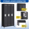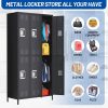 This durable 72-inch tall metal locker storage cabinet features three spacious compartments equipped with 9 hooks and 3 shelves, ideal for organizing clothes, shoes, bags, paperwork, and more. Reinforced with cold-rolled steel and electrostatic anti-fade coating, it resists dents, rust, and UV damage for long-lasting use. Hidden ventilation vents provide airflow to reduce odors while maintaining privacy. Its versatile design suits high-traffic locations such as offices, gyms, schools, dormitories, and garages, offering secure and clutter-free storage. Easy assembly with included hardware ensures quick setup.