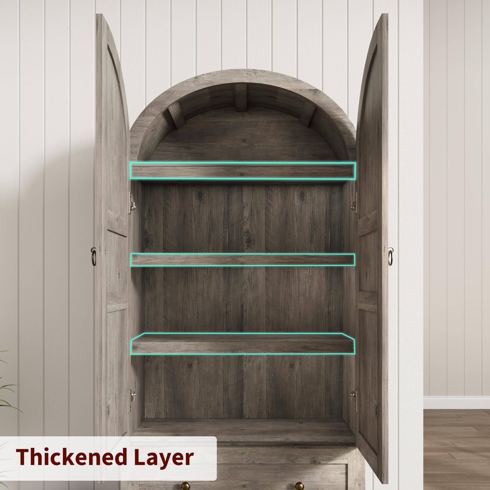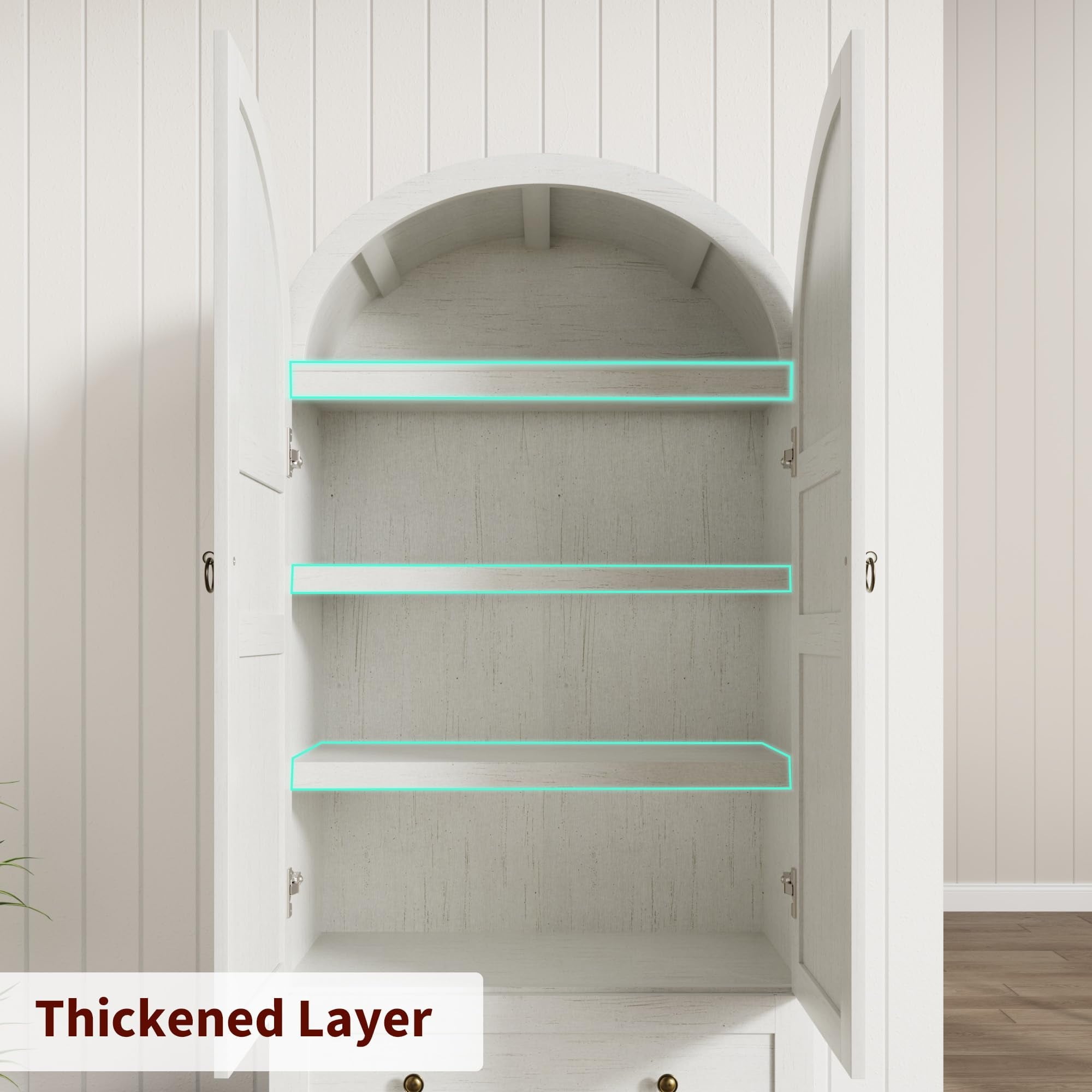 - Hassle-Free Assembly and Easy to Maintenance: Every component in this arched pantry cabinet package is marked with alphanumeric labels for foolproof identification. Included printed step-by-step instructions tutorials ensure a quick, frustration-free setup – you’ll be organized in no time!