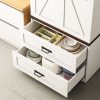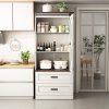 Large Storage Space — This pantry cabinet offers a spacious solution with dimensions of 31.5”W x 15.7”D x 72.2”H. Its drawers, measuring 29.9W x 14.4”D x 10.2”H, provide versatile storage for various items. The storage cabinet features two adjustable and removable shelves with three height options, allowing you to customize your storage space according to your needs.