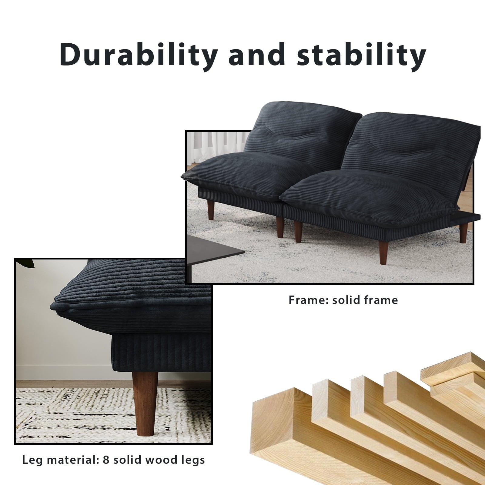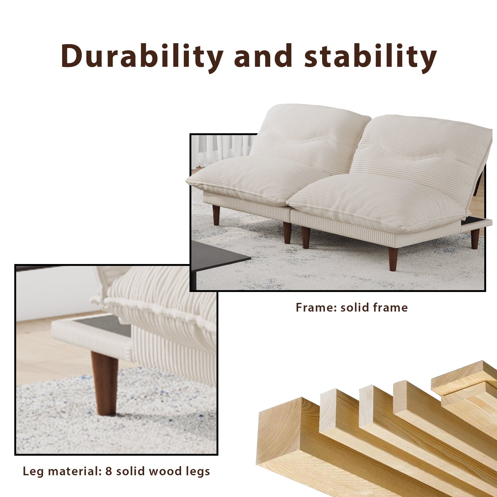 • Built to Last:Solid wood frame ensures durability, with each seat supporting up to 300 LBS. Rest easy knowing this sofa can handle heavy use without wobbling or breaking down.