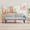 This 3-in-1 futon sofa bed offers three adjustable positions—120°, 160°, and 180°—allowing you to easily convert it from a couch to a spacious lounger or a 67″ W × 36″ D platform bed. Built with a sturdy engineered wood frame and additional support legs, it can support up to 700 lbs, making it a durable and stable option for everyday use. The high-density sponge cushions are upholstered in skin-friendly linen flannel, ensuring long-lasting comfort. This compact futon is perfect for small spaces like apartments, offices, dorms, or guest rooms, offering a functional, space-saving solution without sacrificing comfort. Its modern, retro design fits seamlessly with various home decor styles. Easy to assemble with all accessories and detailed instructions included, it also features 10.6 inches of clearance beneath the sofa, making cleaning a breeze. Please note that the futon is delivered in two separate packages, which may arrive at different times, so there’s no need to worry if you only receive one package initially.