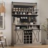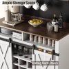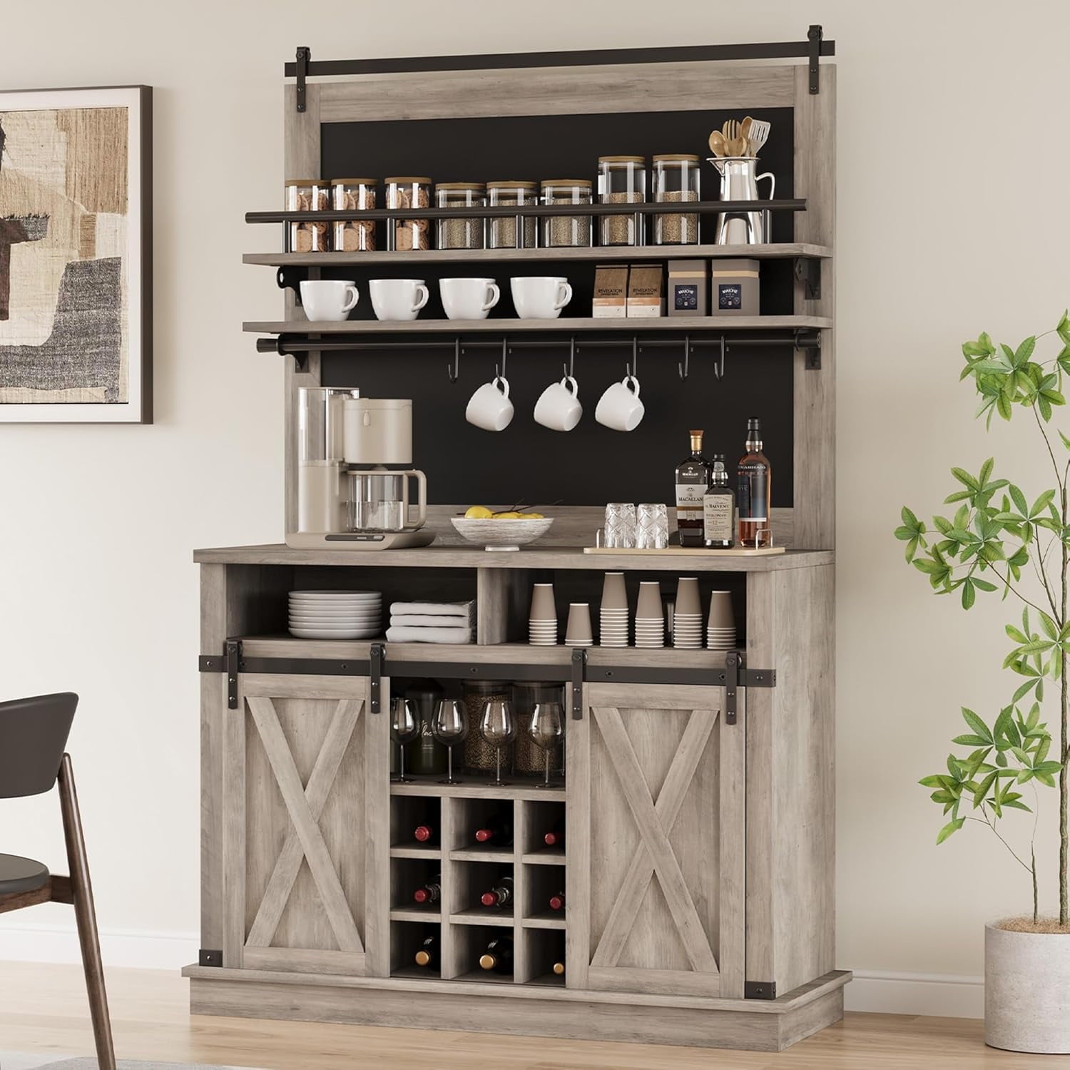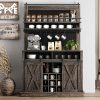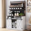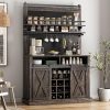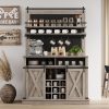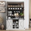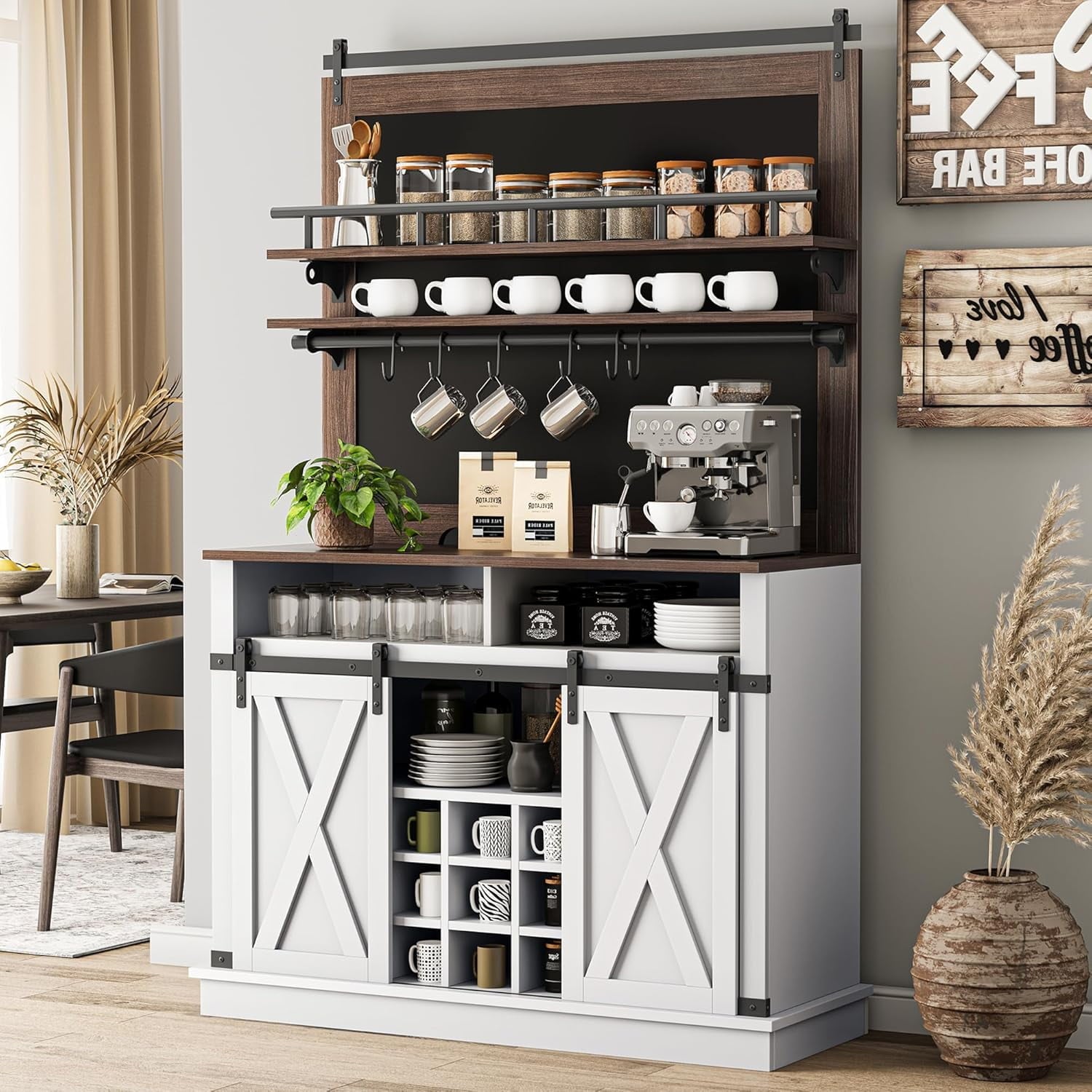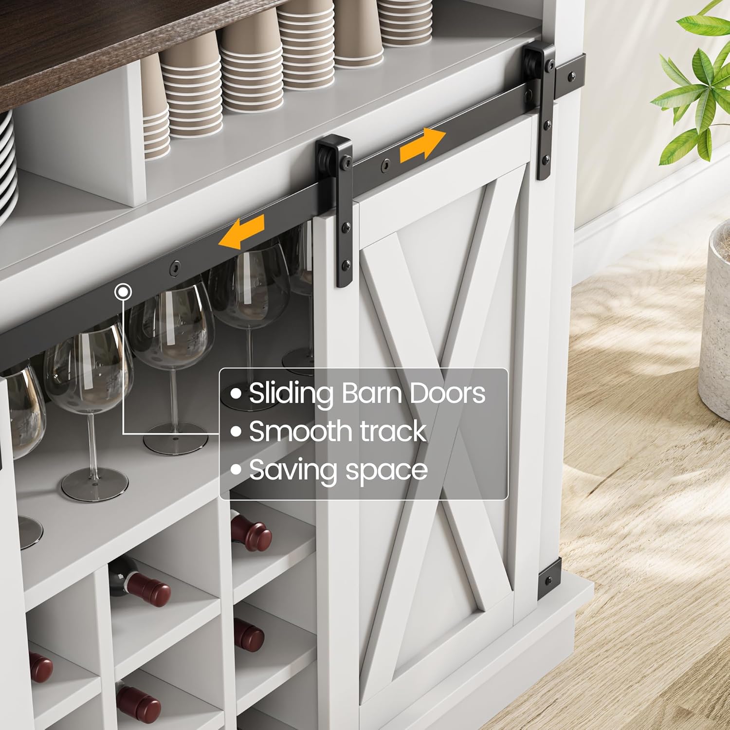 SLIDING BARN DOORS: This kitchen storage cabinet is equipped with sliding barn doors to save space, while the interior cabinets offer versatile storage options. The ample storage features ensure that all essentials for your coffee bar are neatly arranged, allowing you to savor your leisure moments to the fullest.