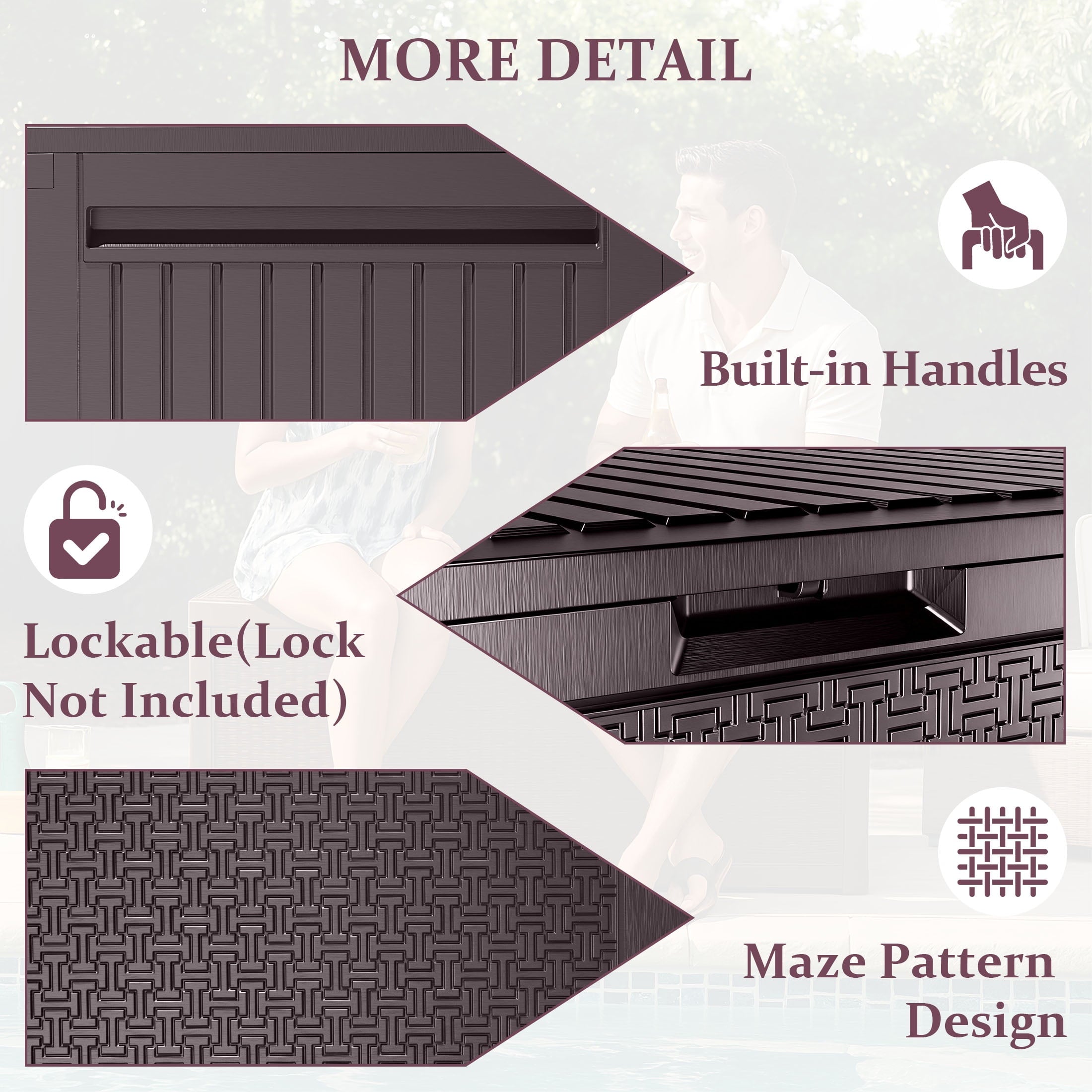 — The deck box is designed with a lockable hole; you can add a lock to the box for security when not in use.