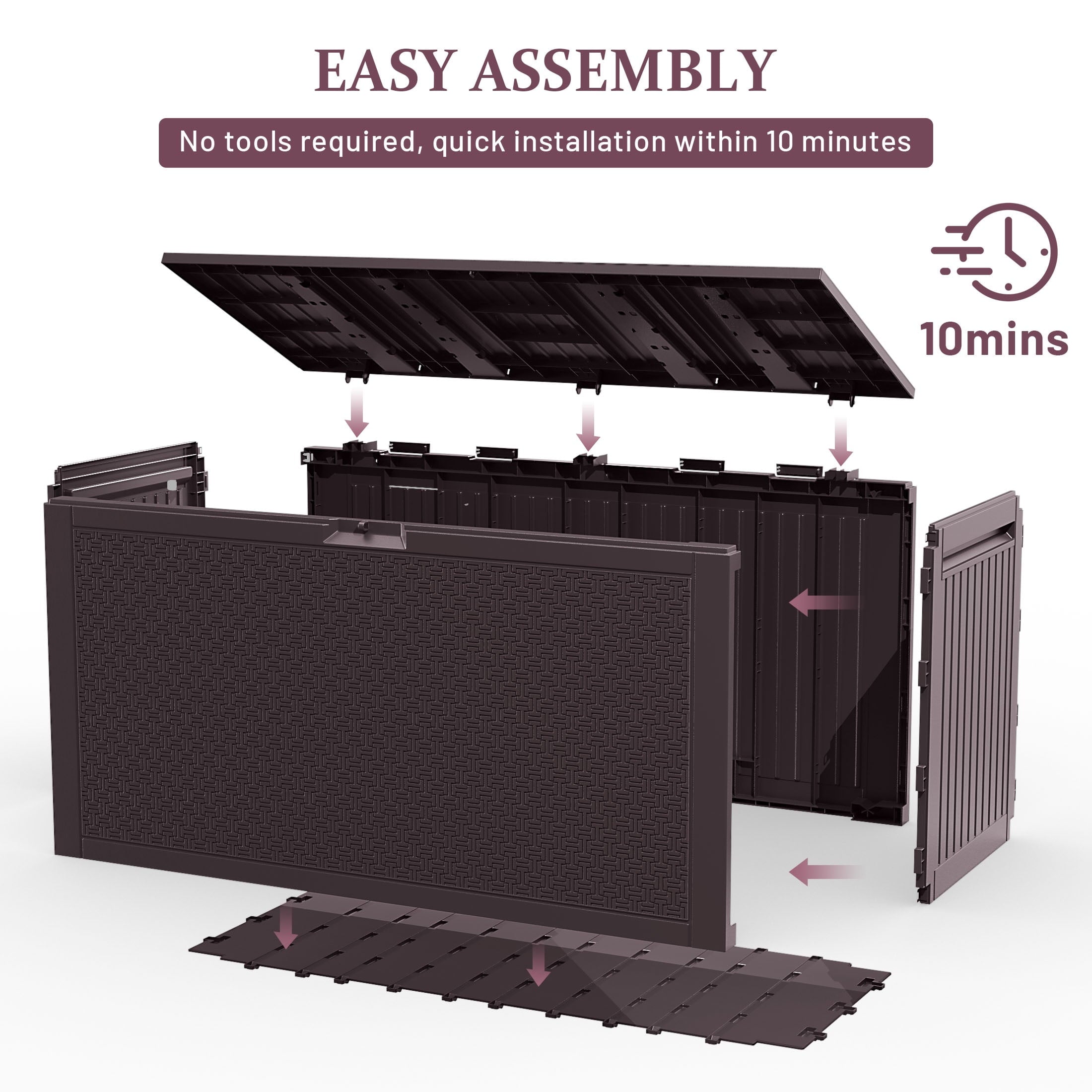 • 【EASY ASSEMBLY, ZERO TOOLS】Our deck box with its tool-free design—simply snap the durable interlocking panels together in minutes—no screws, no hammers, no frustration, just instant organization for cushions, tools, and backyard essentials.