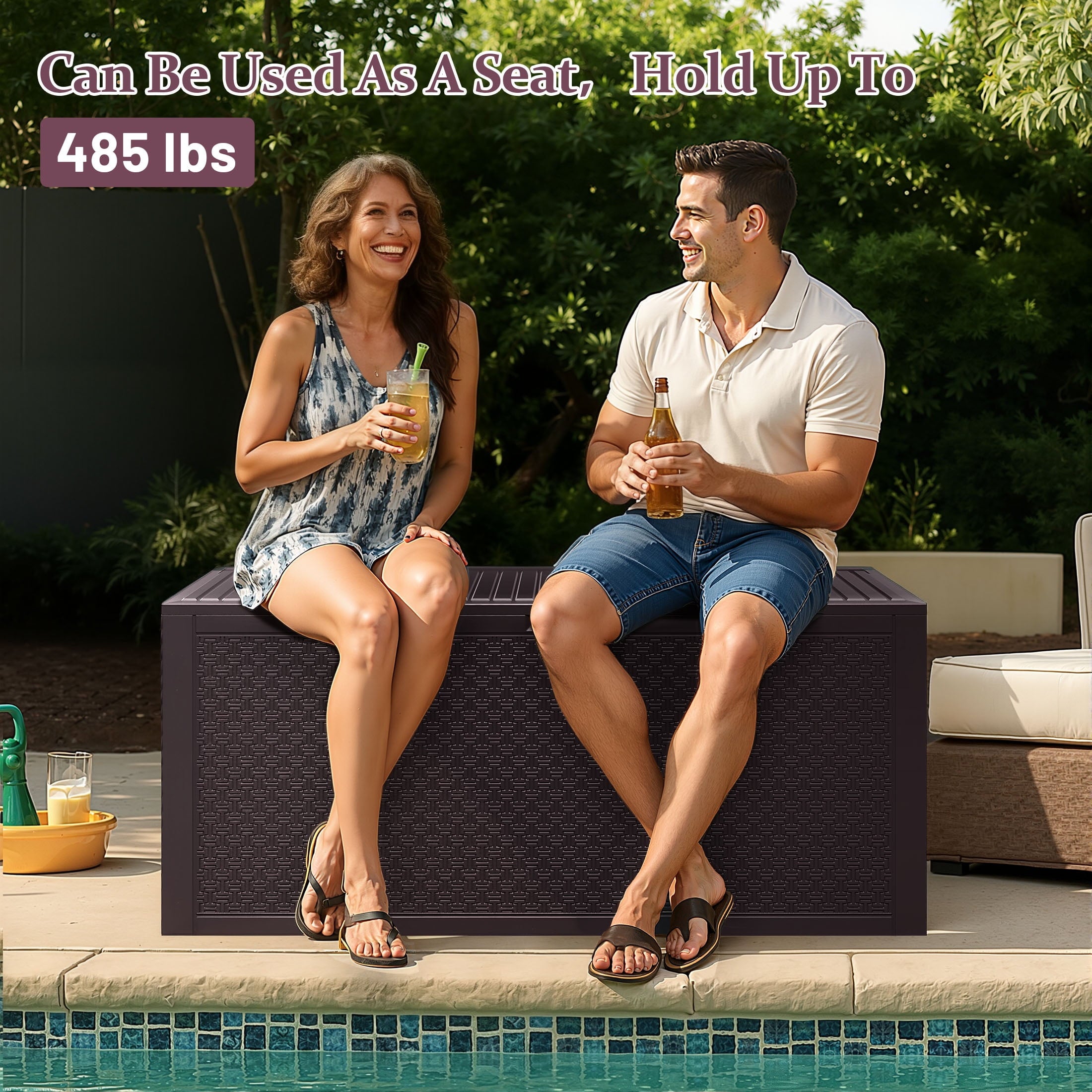 • 【WIDE VERSATILITY】The 90-gallon storage box can not only help you organize your patio or lawn. The top of deck box doubles as extra seating or an end table for holding drinks or snacks with a weight capacity of 485 lbs.