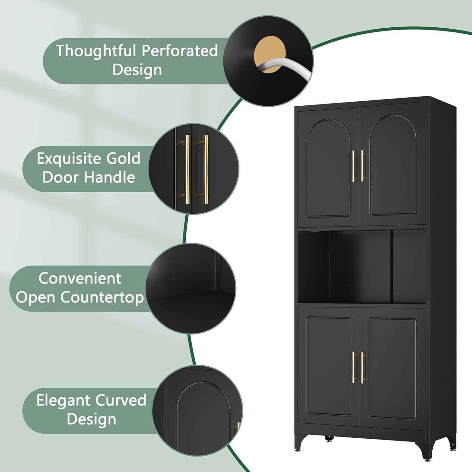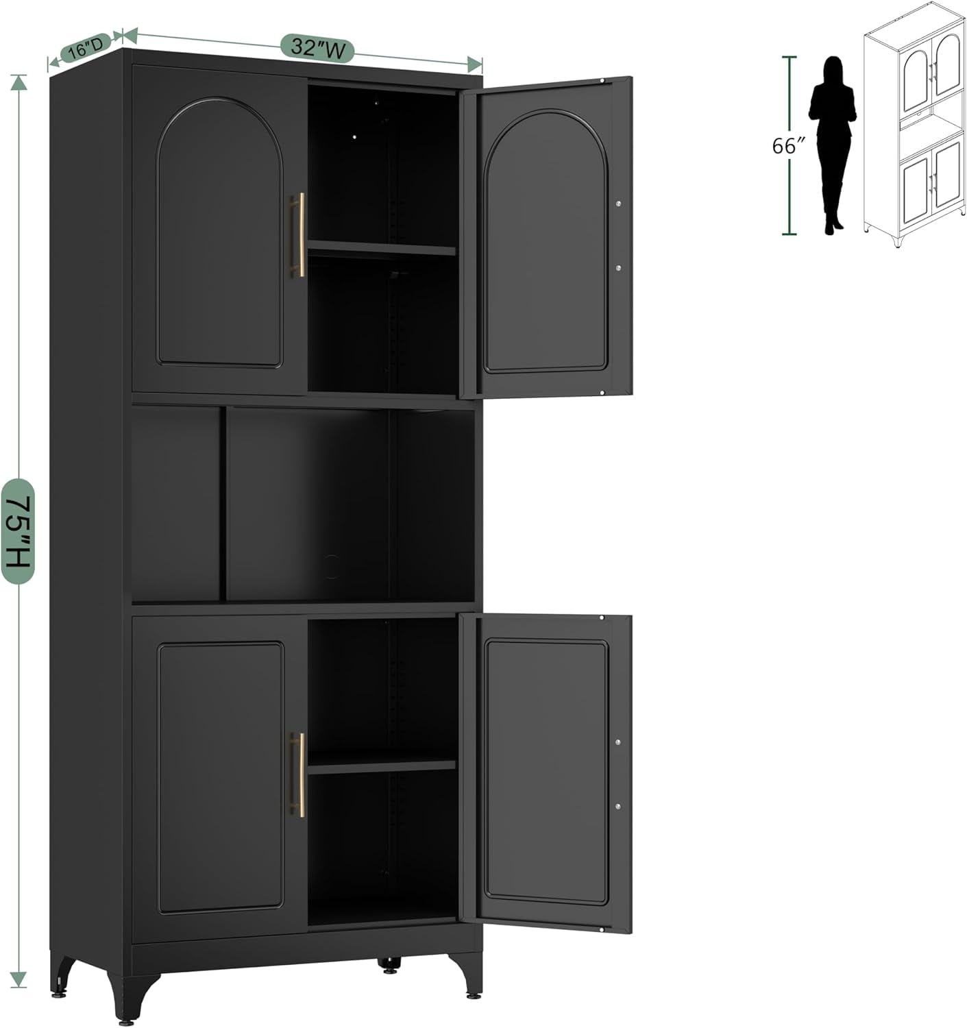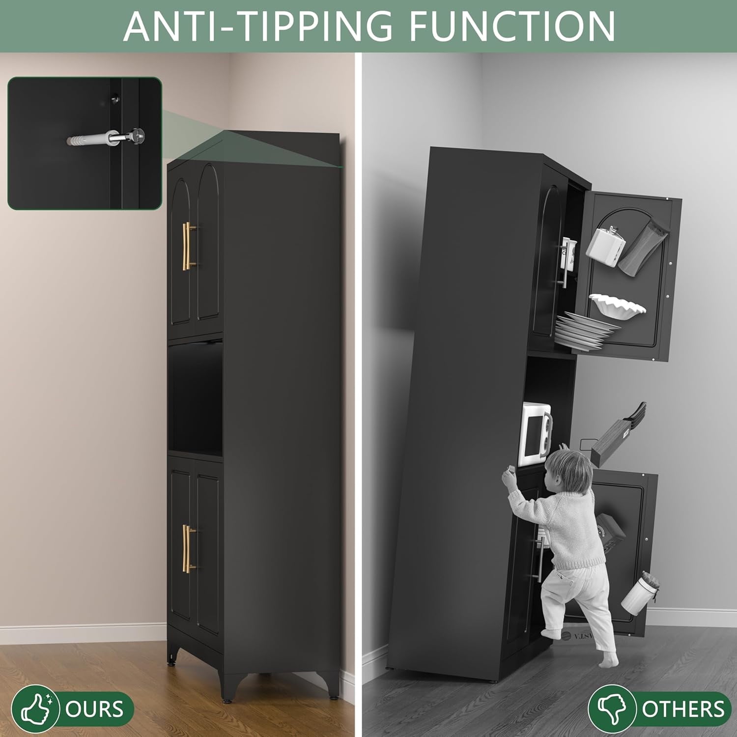 - Premium-Quality Materials: The pantry cabinet is made of high quality steel for durability and resistance to deformation. Each shelf has a weight capacity of up to 180 pounds. The Kitchen pantry cabinet is equipped with anti-tipping fixings to avoid tipping accidents