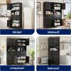 - 【Maximum Storage Space】 The metal pantry cabinet is equipped with 2 closed cabinets, 2 drawers and a convenient open countertop to meet your diverse living needs. The 2 closed storage cabinets provide amazing storage space. Inside, there are adjustable shelves that can be adjusted in height according to the size of the items placed. The drawers can hold small items. The unique design makes your home neat and organized.