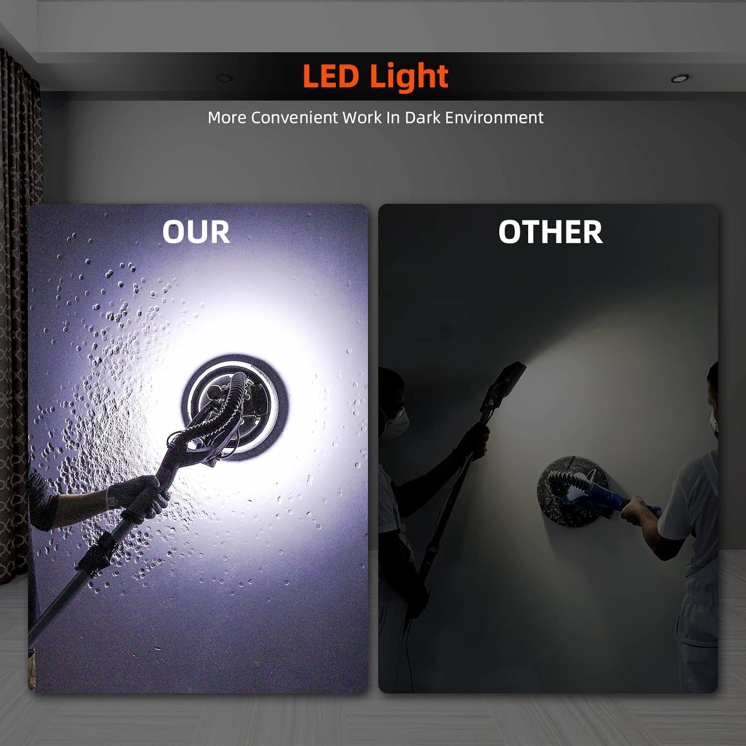 AOILE 750W Electric Drywall Sander with LED Light, 7 Variable Speeds, Extendable Handle, 14 Sanding Discs, Foldable Design, Dust Hose
