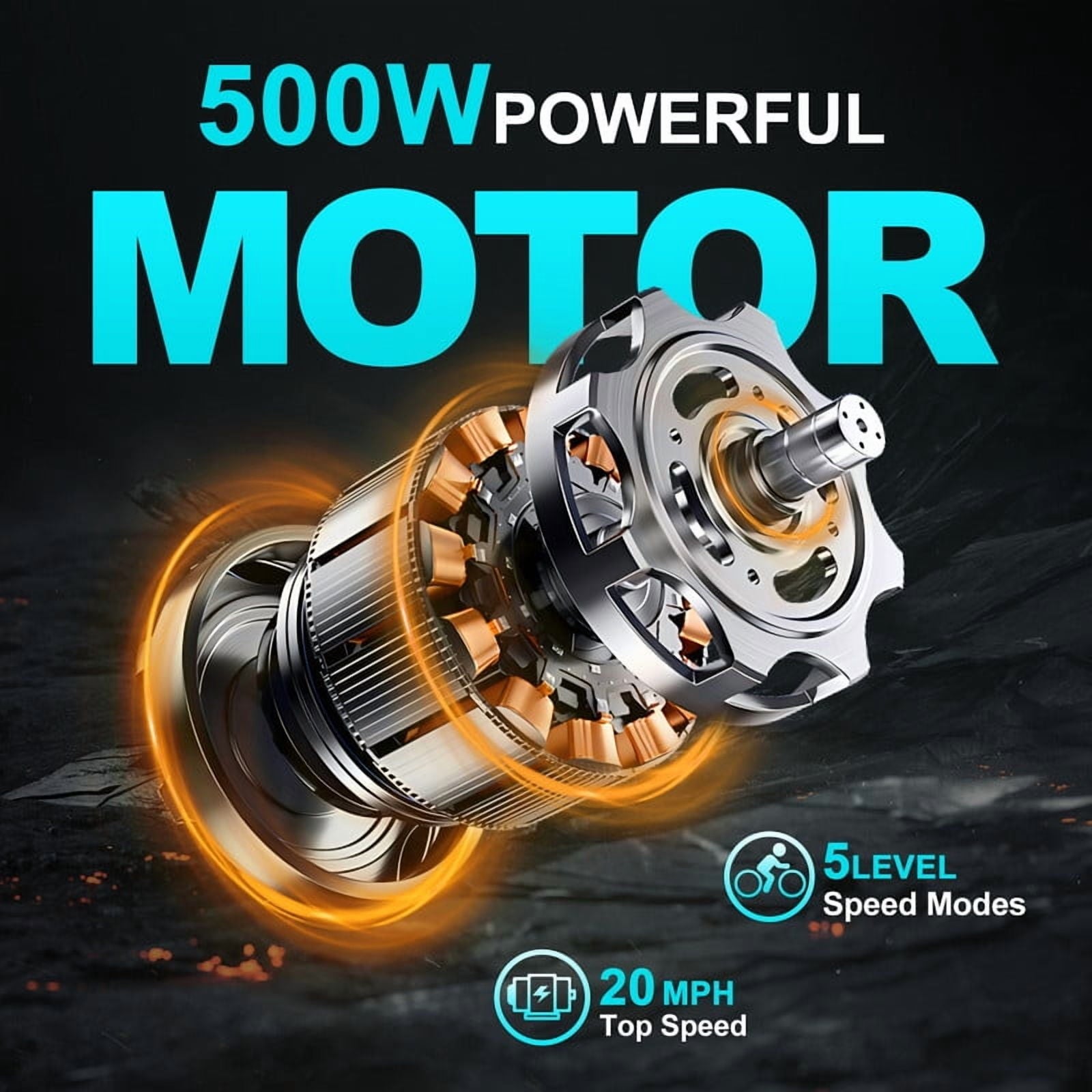 - 【Powerful 48V 750W Peak Motor Performance】This folding electric bike is equipped with a 500W high-torque motor that reaches speeds up to 24MPH, giving you the power to climb hills with ease and handle terrain confidently. With a peak output of 750W, it delivers smooth acceleration and a responsive ride every time. Backed by 1-year protection, it ensures both reliable performance and peace of mind while you enjoy an exciting riding experience.