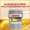 Sinopec GL-5 Synthetic Heavy Duty Automotive Gear Oil is a high-performance gear oil, formulated with high-quality synthetic base oil and an advanced multifunctional additive system to meet the requirements of API GL-5. Designed for the lubrication of hypoid gear sets in passenger vehicles and commercial vehicles, where they offer excellent extreme pressure (EP) and anti-wear properties.