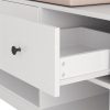 - Comfortable removable linen cushion offers ergonomic seating while bottom drawer (45 lbs) and shelf provide discreet storage space