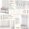 - Multi-functional design includes cushioned shoe bench (220 lbs capacity), 4 coat hooks, 3 top compartments and customizable pegboard for personalized organization