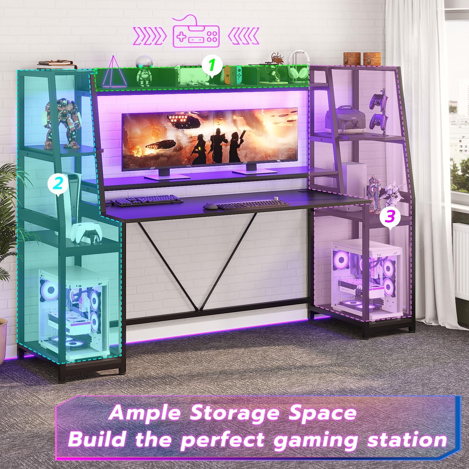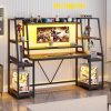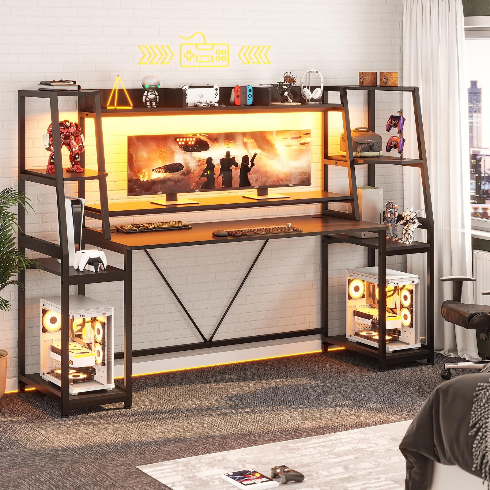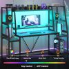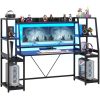 【Multifunctional Desk for Gamer】This ergonomic gaming Computer desk comes with a monitor stand, LED lights, two large storage shelf, hutch, CPU holder.