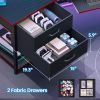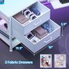 • 【Ample and Diverse Storage Space】This modern computer desk is designed with functionality and convenience in mind, offering ample storage space to keep your workspace organized. It features two fabric drawers that provide a soft, quiet opening and closing mechanism, perfect for storing smaller items such as stationery, cables, or personal belongings. Additionally, an open shelf is included for easy access to frequently used items like books or decorative pieces. The desk also includes a CPU stand, ensuring your computer tower is securely placed.