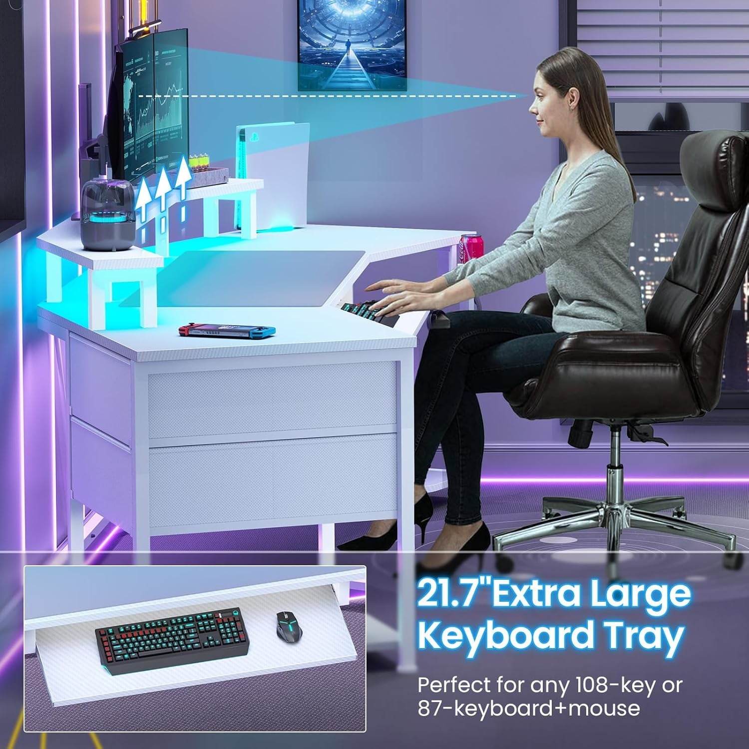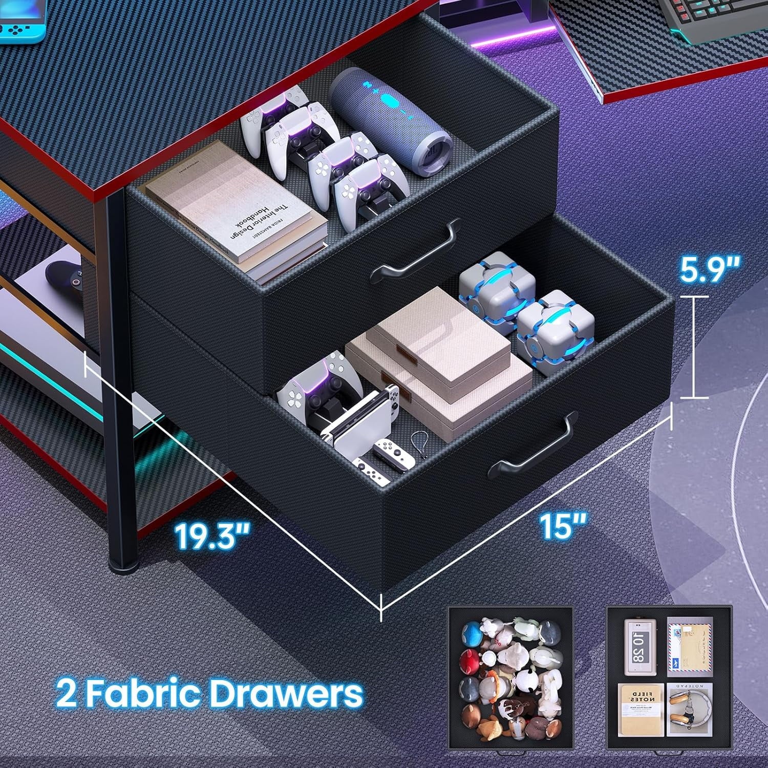 🌟Meet the ultimate modern computer desk, designed to elevate your gaming and home office experience. This desk combines a sleek, carbon fiber design with practical features that cater to the needs of both gamers and professionals. With ample storage, smart LED lighting, and versatile functionality, this desk is not just a piece of furniture but a statement of style and efficiency.