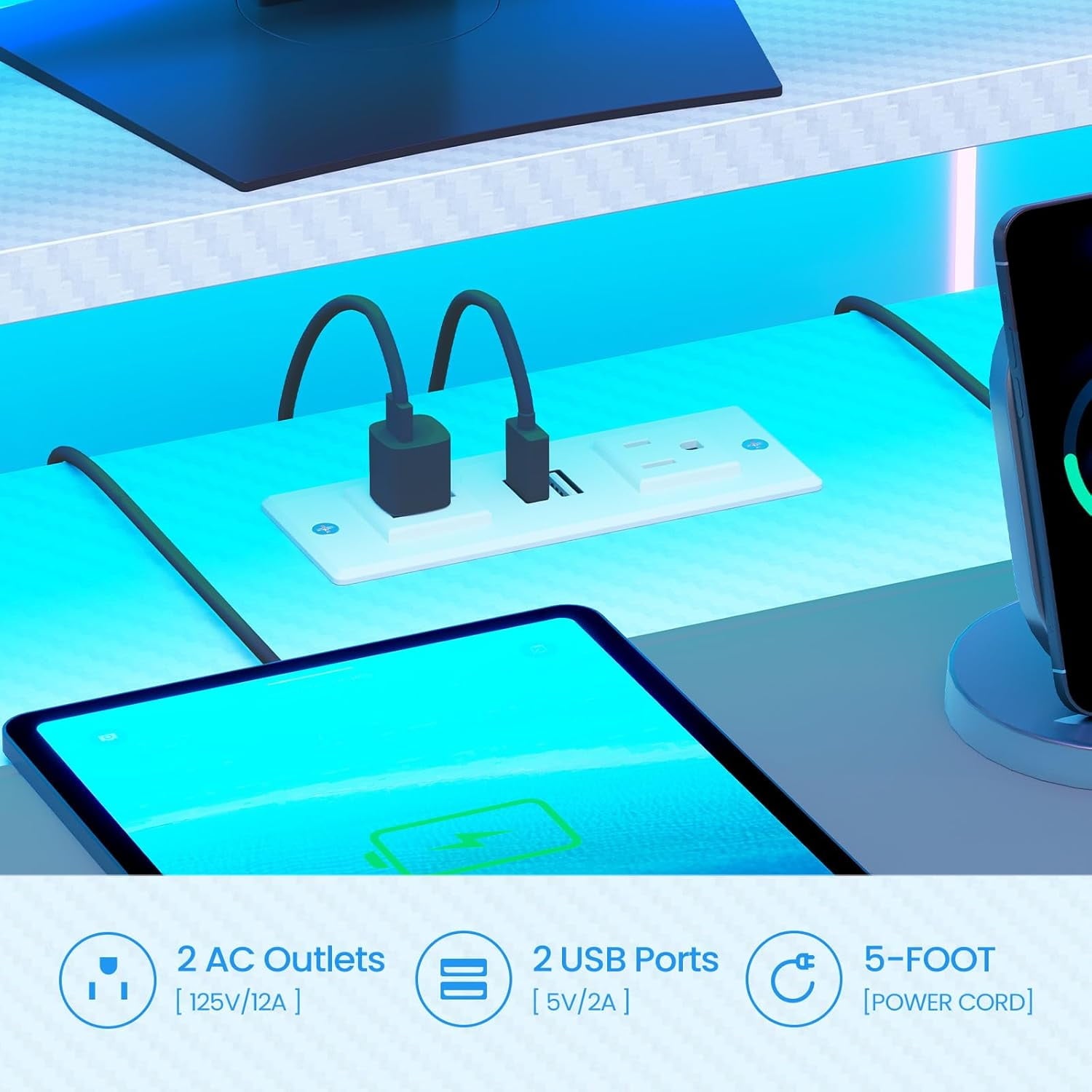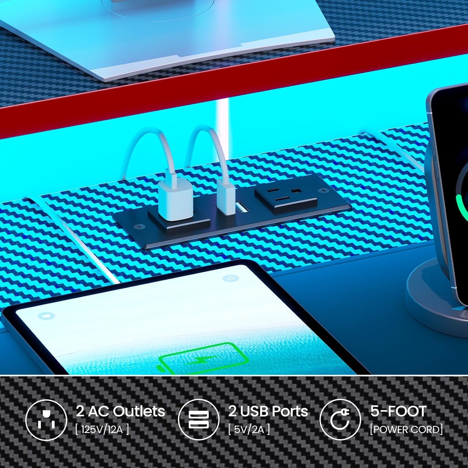 • 【Versatile Functionality】This gaming table is equipped with a built-in charging station that includes two AC outlets and two USB ports, providing a convenient solution for charging your devices without the need for multiple power strips. The monitor stand is designed to hold multiple screens, allowing for an extended display setup that is perfect for multitasking or immersive gaming.