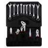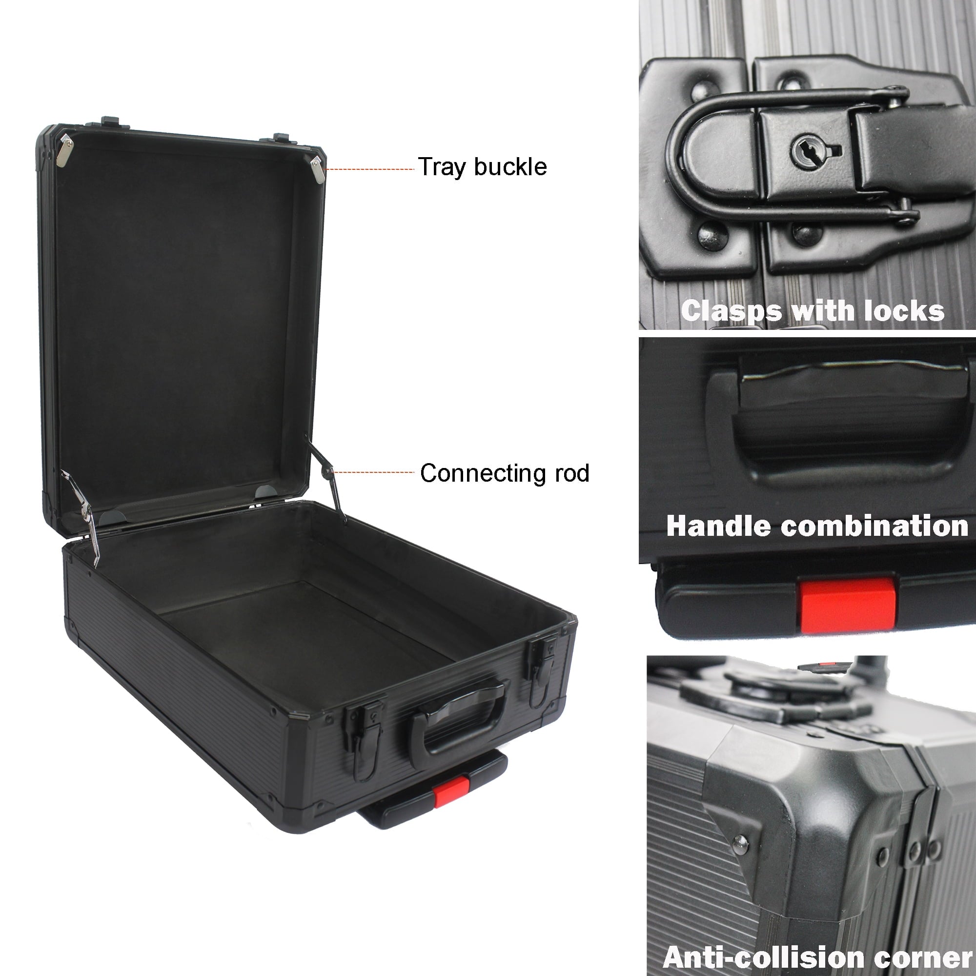 - – The tool set is made of sturdy forged steel, and the tool surface is chrome plated to prevent corrosion and oil stains. The outer housing of the box is made of high-quality aluminum, with a strong metallic texture.