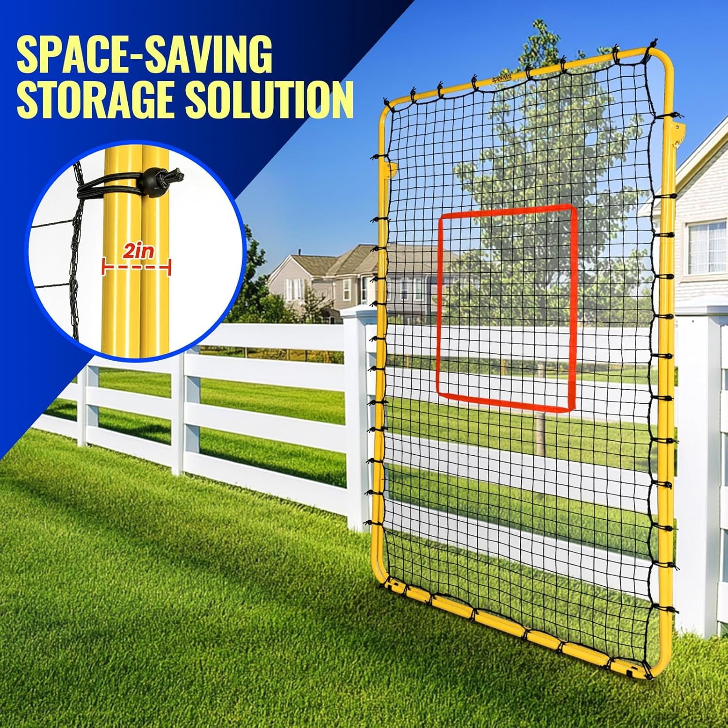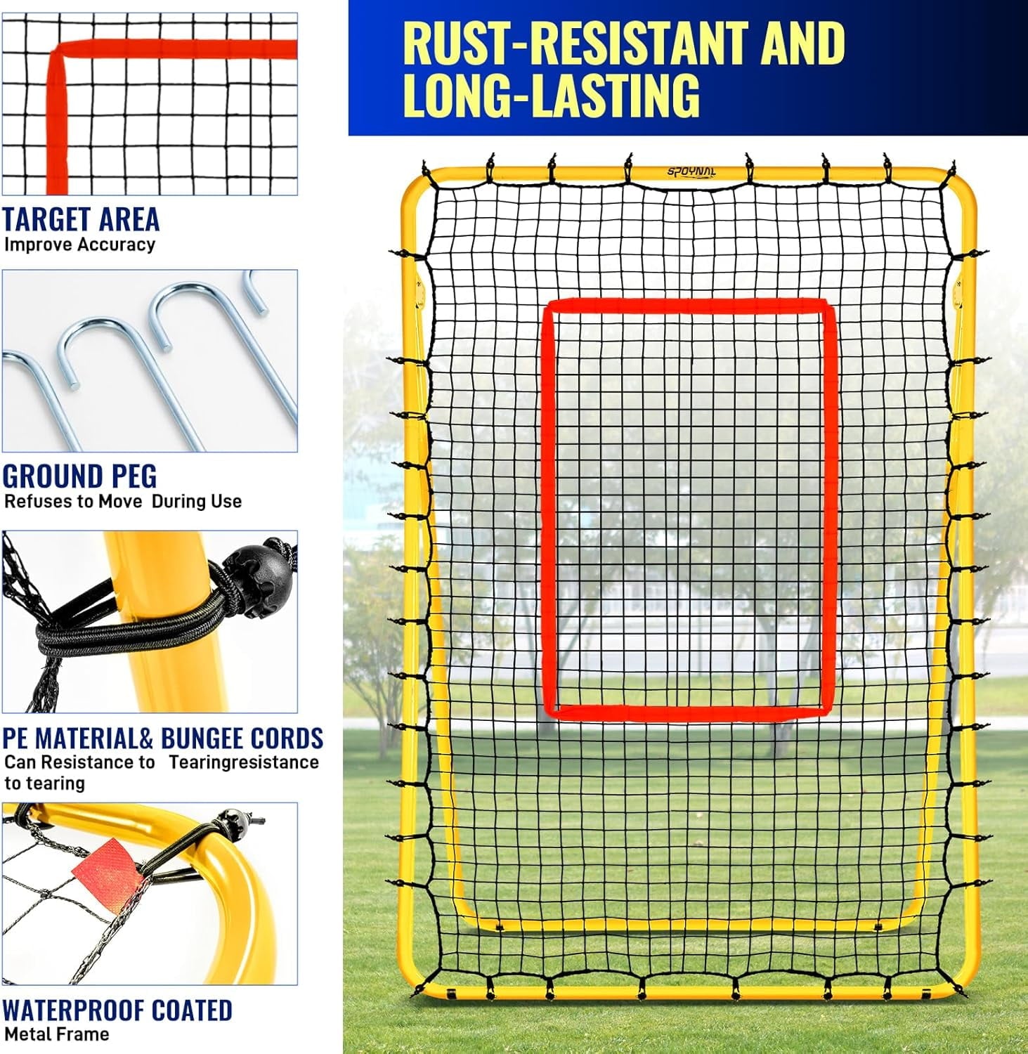 ULTRA-DURABLE WATERPROOF FRAME & TEAR-RESISTANT NET – Built for relentless training, our volleyball rebounder features a coated steel frame and high-tension PE netting reinforced with bungee cords. Weatherproof, rust-resistant, and designed to withstand intense sessions, this volleyball net for backyard or beach use delivers consistent bounce-back performance year after year.