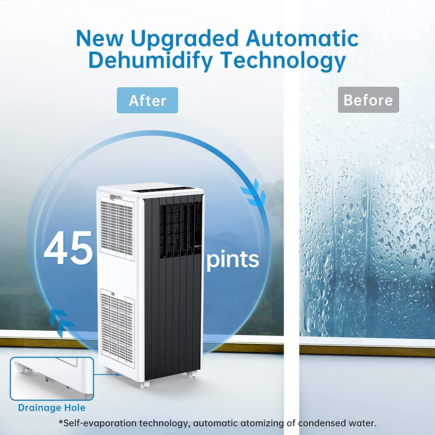 - Smart Self-Evaporation Feature: Equipped with advanced self-evaporation technology, this AC unit automatically manages condensate drainage, keeping your space dry and clean. For high-humidity conditions, a manual drainage option is available to ensure optimal performance.