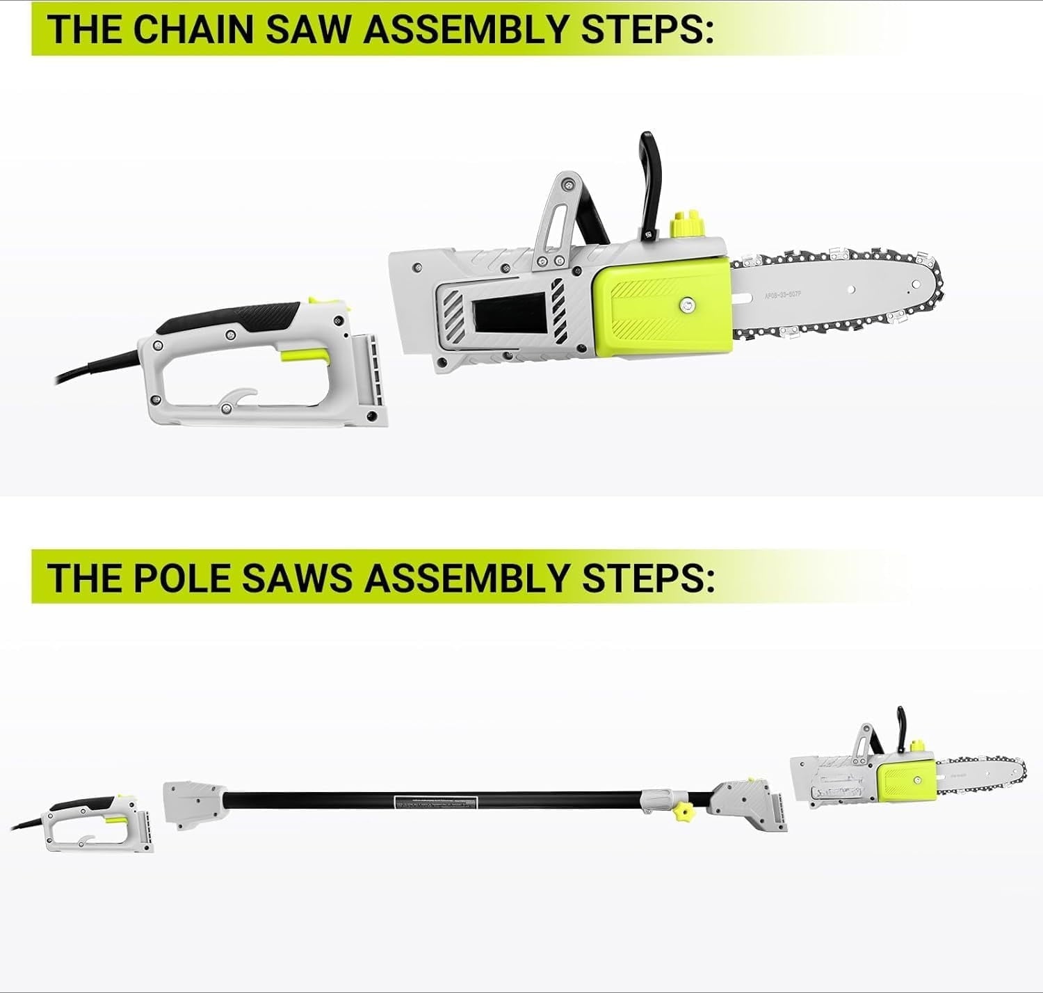 - Can also be used as a power chain saw for ground-level cutting needs.