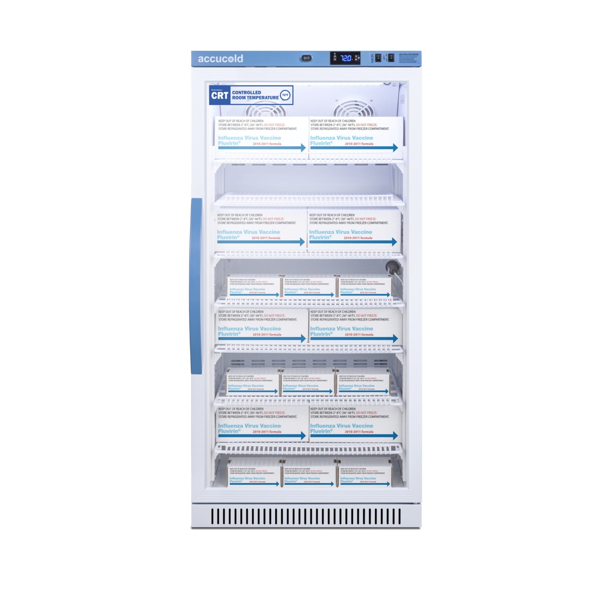 Performance series 8 cu.ft. upright glass door controlled room temperature cabinet for pharmaceuticals and vaccines in a white finish with lock and antimicrobial silver-ion handle