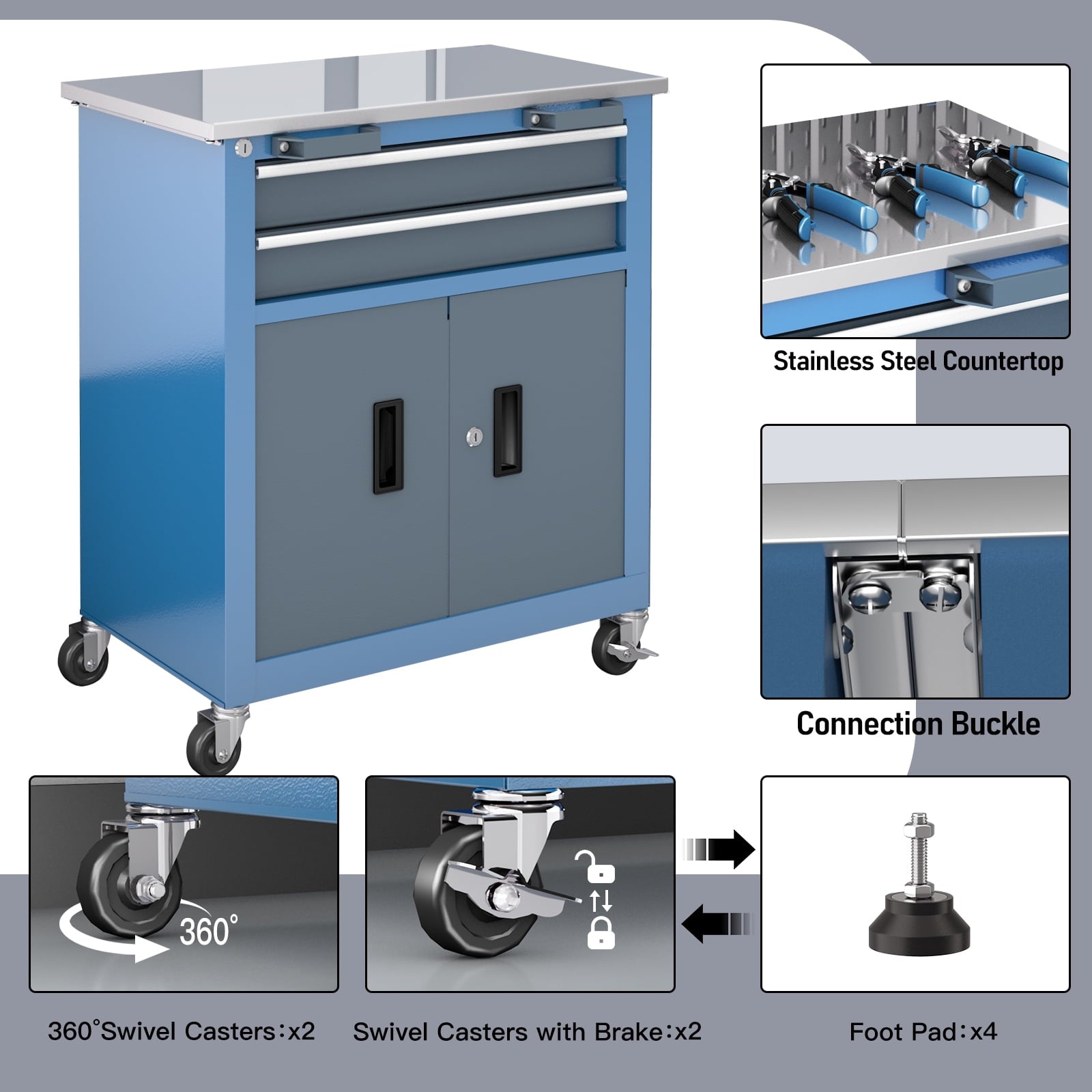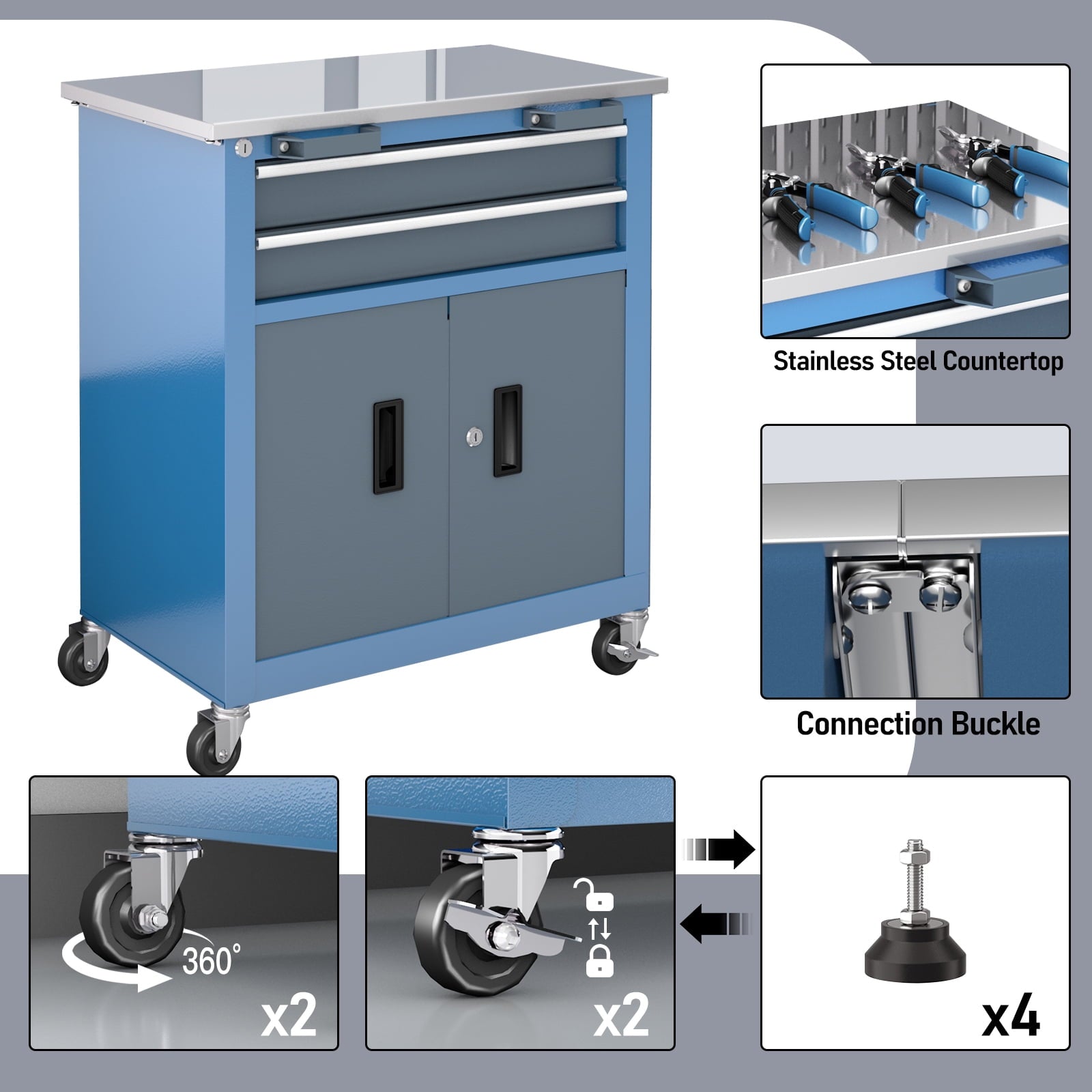 - SilentGlide Mobility 360° magnetic brake casters + rubber cushion feet protect floors & reduce noise to <35dB (60% quieter than standard tool chests)