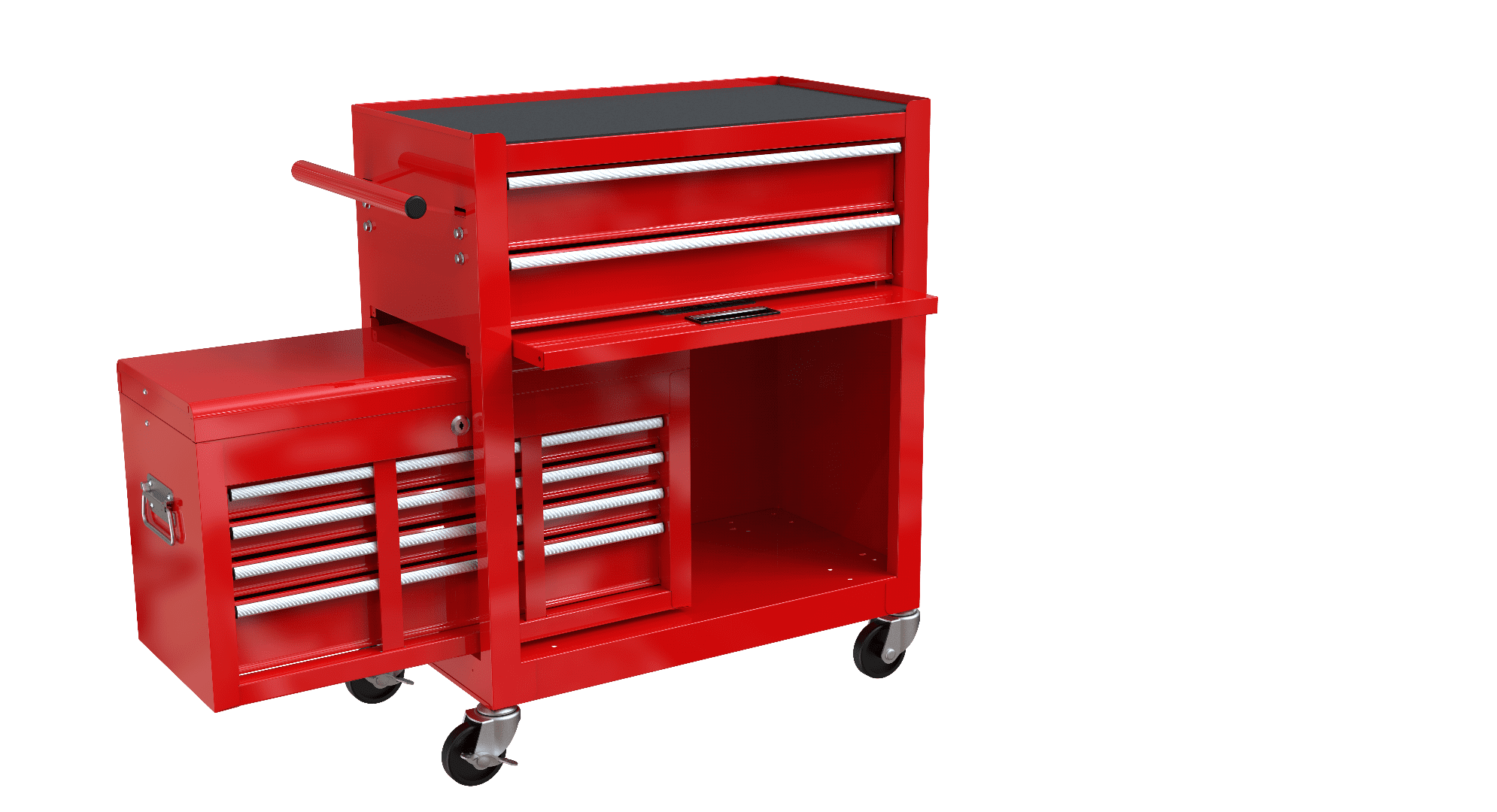 - [Large Capacity] – This toolbox features multiple drawers, each serving a different function. It includes a moderate toolbox at the top, perfect for frequently used tools, three small drawers side by side ideal for screws and other small parts, five tray drawers for medium-sized tools, and a large-capacity cabinet at the bottom, designed to store large electric tools.