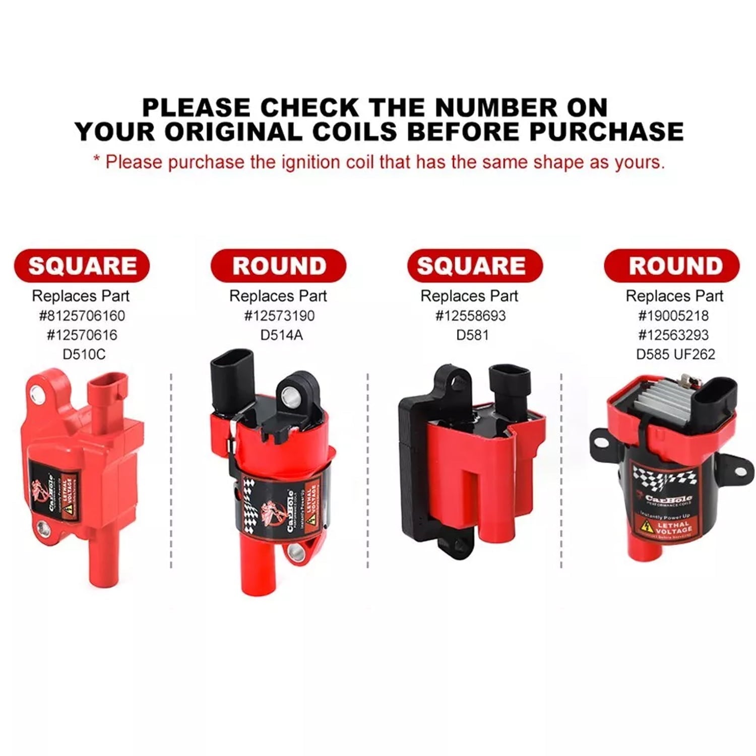 To avoid getting wrong coils, please check the numbers on the coils of your own vehicle. If no number is found, please use enter your vehicle in your Walmart Fit Widget to check if this part is compatible with your vehicle or contact us to help you confirm if the model is suitable.