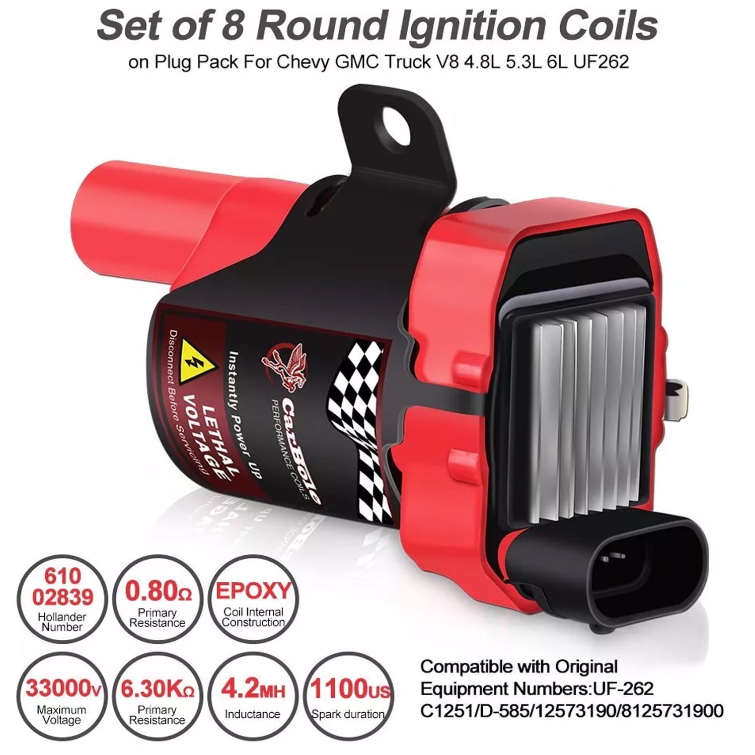 - Package including: 8 x Round Ignition Coils;