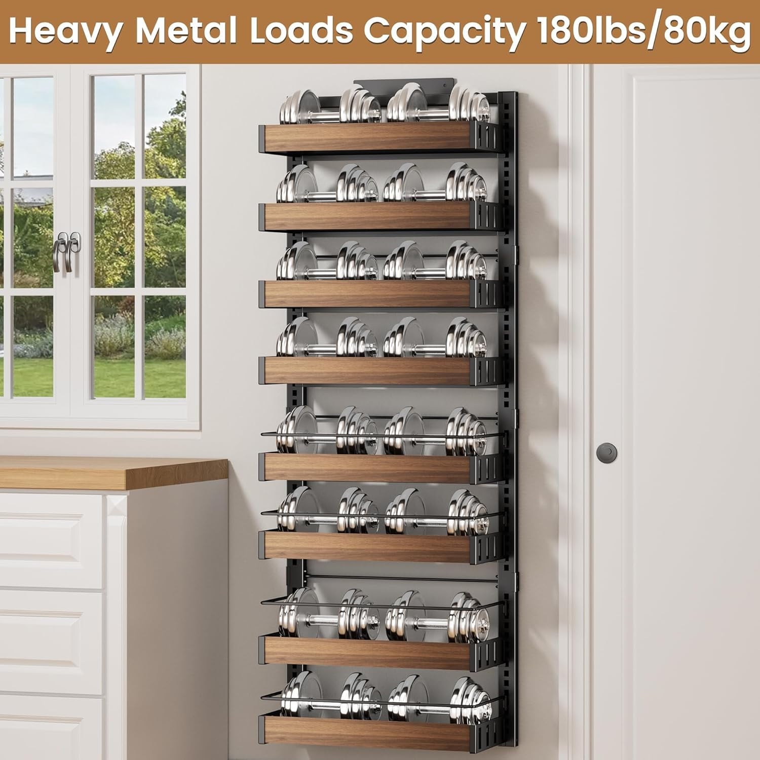 ADJUSTABLE SHELF HEIGHTS FOR VERSATILE STORAGE: Our over the door organizer boasts 8 baskets with an adjustable height of 1.8 inches, ideal for accommodating variously sized spice jars, snacks, and other items. Additionally, it features 4 sturdy support bars designed to hold taller items securely and prevent them from tipping over.