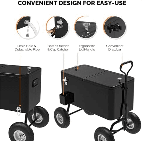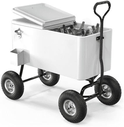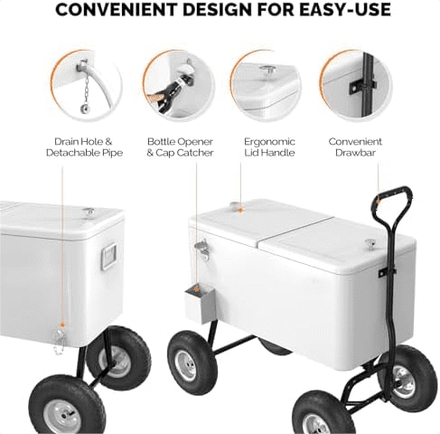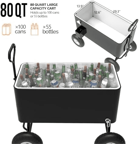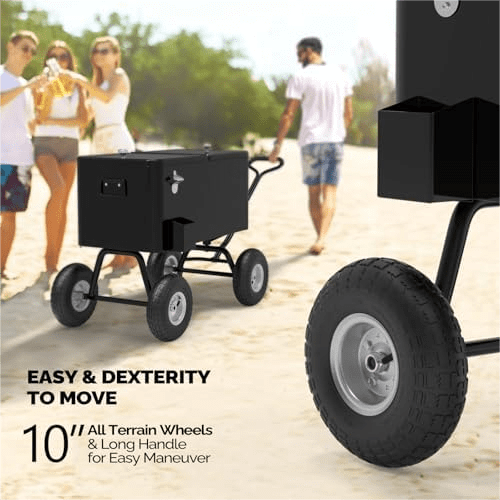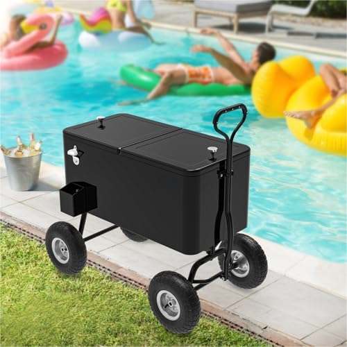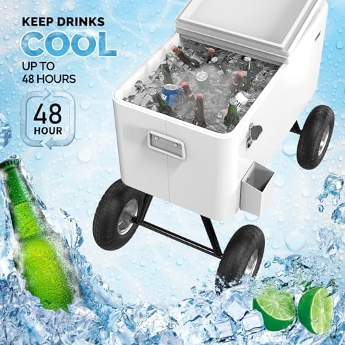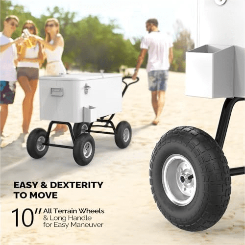 Home Cooler Carts 80 Quart Wagon Rolling Cooler Ice Chest, /Long Handle and 10″ Wheels, Portable Beach Patio Party Bar Cold Drink Beverage, Outdoor Park Cart on Wheels