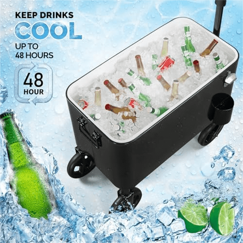 KEEP COOL TO 48 HOURS: This outdoor rolling cooler made with high-grade materials and designed to cool efficiently. It well-insulated and ready to keep your beverages’ cool for 48 hours. It perfect for any outdoor and indoor occasion like barbeques or backyard party